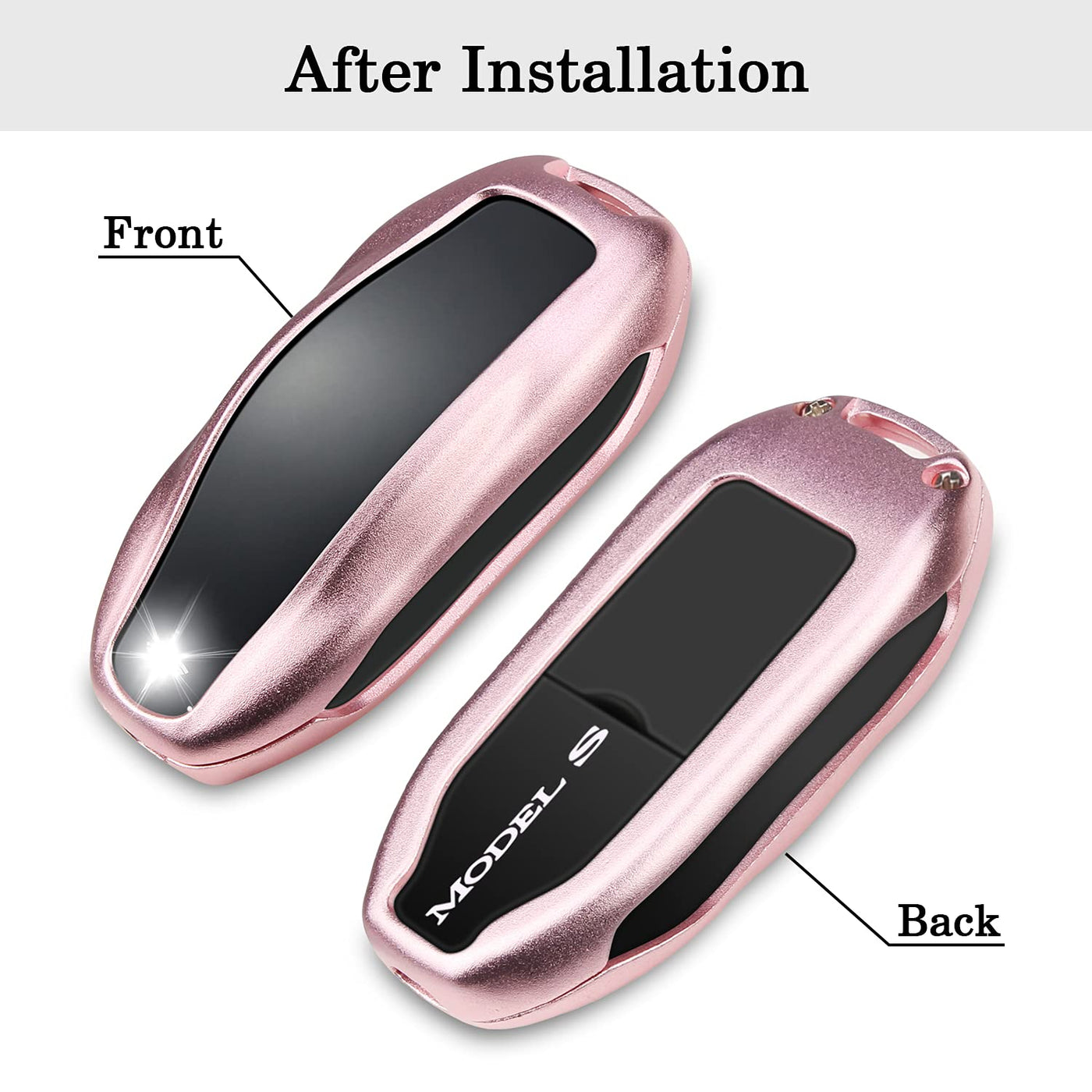 【Custom Fit for Tesla Key Fob Accessory】The compatible with Tesla keyfob holder is designed for Tesla Model S, Model 3 and Model Y smart remote base on original data. Fits perfectly and provides great protection to your Tesla remote. | 【Durable Materials】The for Tesla smart remote protective cover is made of high quality aluminum metal, which is rustproof, sturdy but in lightweight (shell thickness is around 1mm). It not only makes your key look deluxe, but also provides stronger protection than other materials. | 【Personalized Design】The scientific hollow design of the for Tesla keychain case, allows you to access the buttons easily. The strong keychain is for easy carrying and to avoid dropping. And you will find your key easily because of the bright color cover. | 【360-degree Protection】The compatible with Tesla Model S/3/Y key fob case will offer all-around strong effective protection to your key from shock, collision, scratches and other damages. It is a necessity for your expensive key remote. | 【Easy Installation】The for Tesla Model Y/S/3 key protector is easy to install with screws. The package include one case, keychain, screws, screwdriver, and sticky paddings (stick to the inside of the metal to gently separated the key from the metal, avoid from scratching.)
