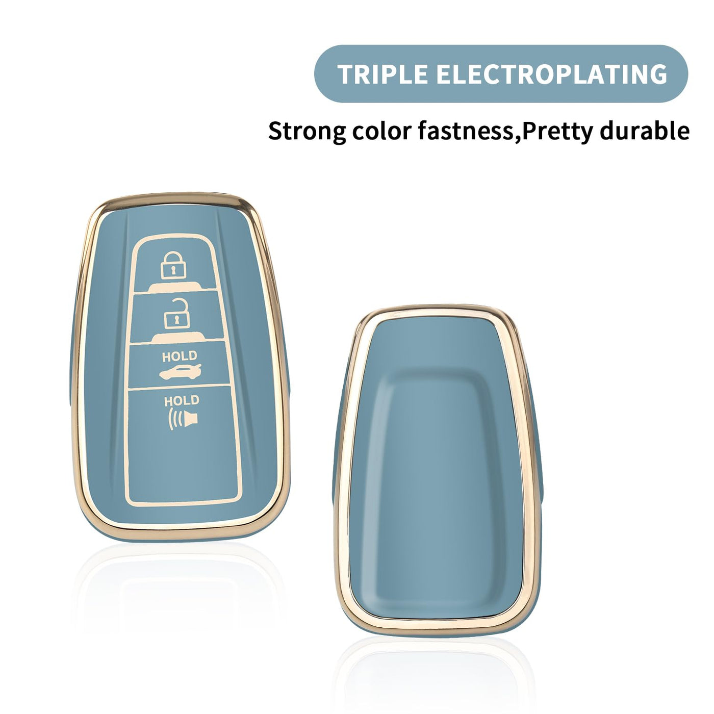 Qbuc For Toyota Key Fob Cover With Keychain Premium Tpu Key Fob Case Suitable For 2018-2024 Highlander Rav4 Camry Avalon C-Hr Corolla Gt86 (Style 2-Blue)