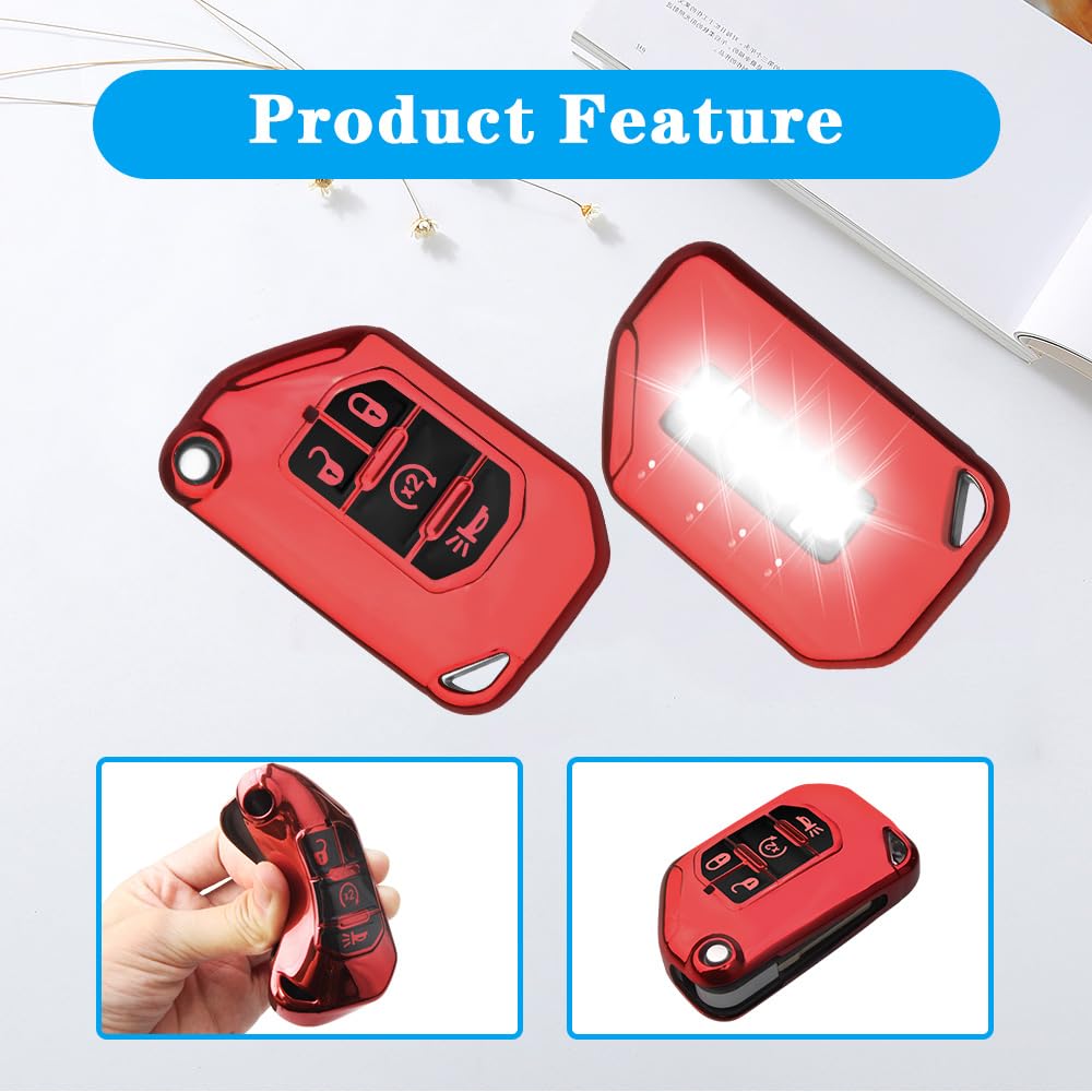 QBUC Jeep Key Fob Cover With Keychain - Flip Key Case Protector for 2018-2024 Wrangler JLU JL, 2020-2023 Gladiator Rubicon JT (R