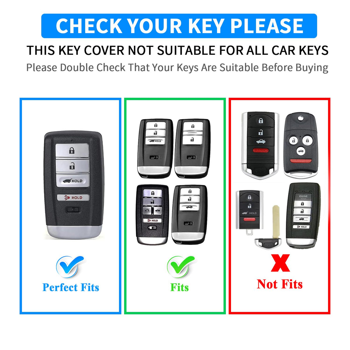 Compatible with the following models: Fit for Acura MDX 2014-2020 Fit for Acura RDX 2015-2021 Fit for Acura ILX 2016-2019 Fit for Acura RLX 2016-2019 Fit for Acura TLX 2016-2022 Fit for Acura PLX 2014-2021 and Etc 4-button car keys Feature: Perfect fit for compatible car key Made of durable material which is durable and won't crack or break easily Easy to install Specification: Brand: QBUC Material: TPU Colors: BlackPurplePinkBlueSilveryWhiteRed Size: 4 buttons Package Included: 1* key fob cover for Acura, 1* key chain and 8* screwdriver. Note: Please check if your key fob can be matched with the key protector on the listing before purchase. If you have any questions, please contact us at any time, we will try our best to solve it for you, thank you!