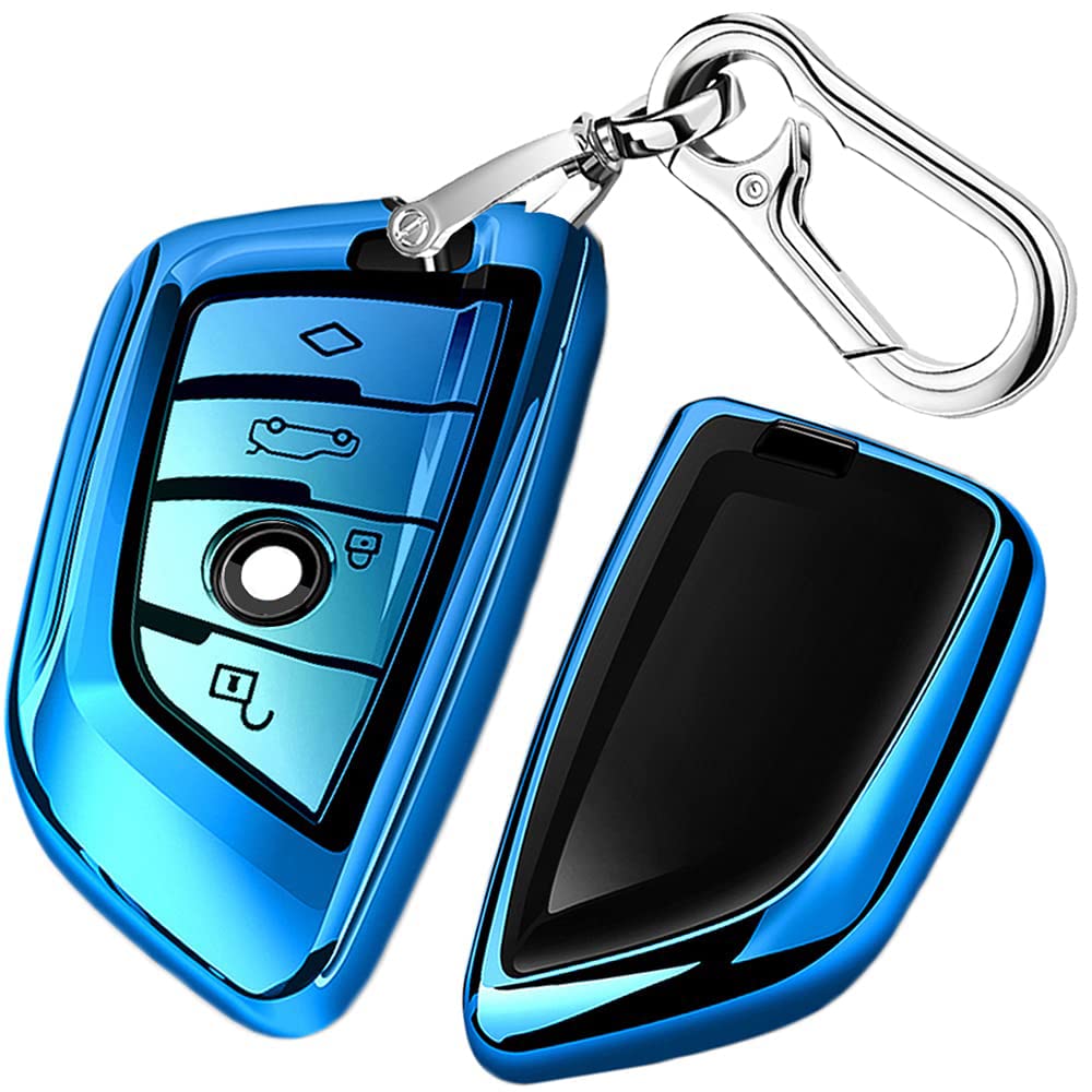 Qbuc Key Fob Cover Full Protective Case, Key Fob Case For X1 /X3 /X5 /X6 And For Series 1 /2 /5 /7 Soft Tpu Anti-Dust Case Shell Keyless Remote Control (Blue)