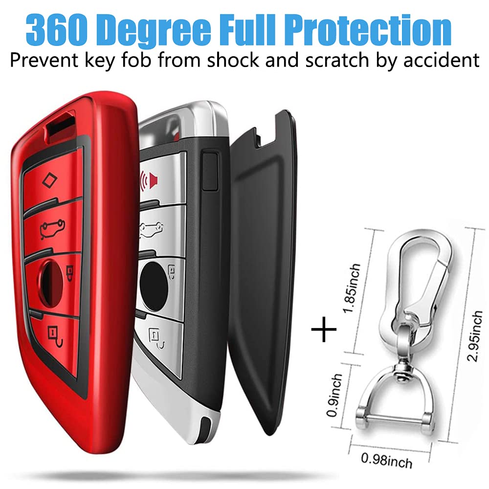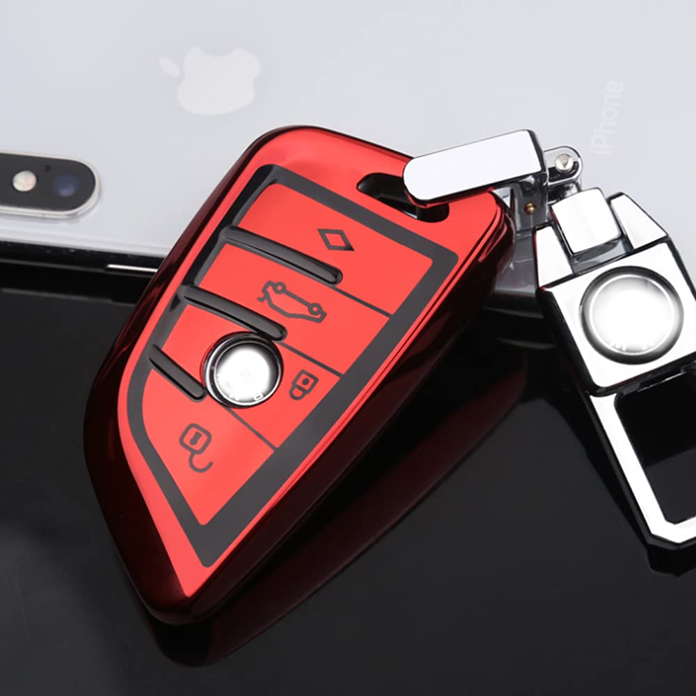 Qbuc Key Fob Cover Full Protective Case, Key Fob Case For X1 /X3 /X5 /X6 And For Series 1 /2 /5 /7 Soft Tpu Anti-Dust Case Shell Keyless Remote Control (Red)