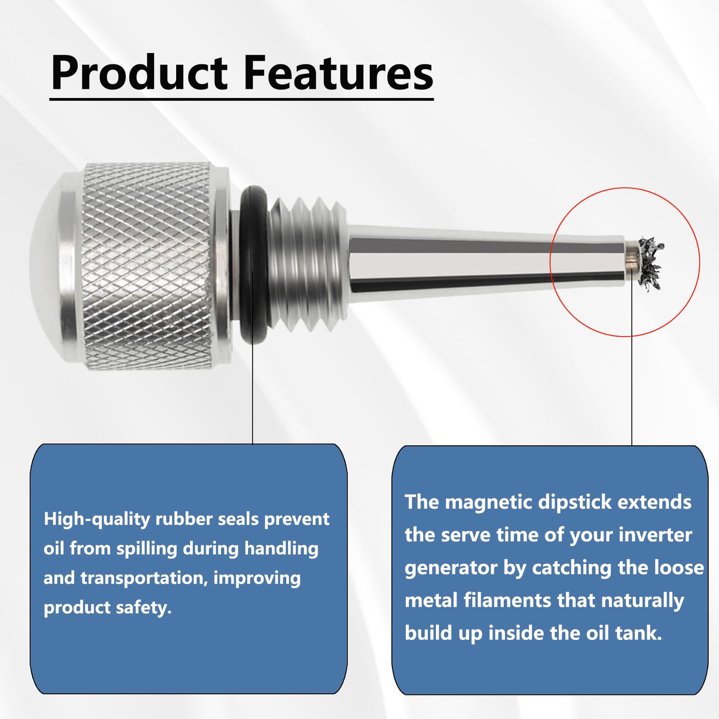 Q: How does the magnetic tip enhance the functionality of the dipstick?A: The industrial-strength magnetic tip of the dipstick effectively collects metal shavings from the engine oil, helping to keep your engine clean and functioning smoothly. This feature can extend the lifespan of your generator by ensuring that contaminants are minimized.