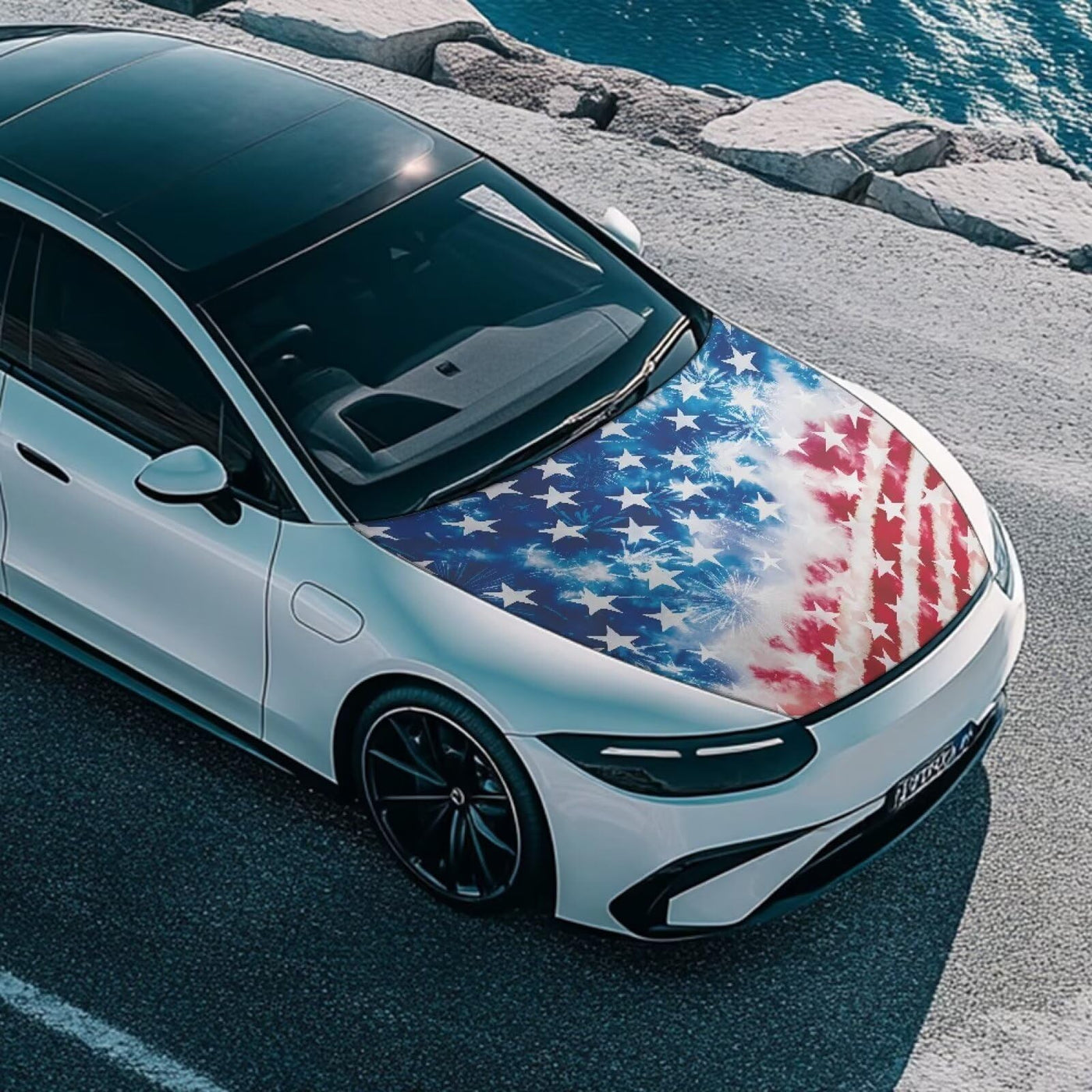 Qiyupavto American Flag Design Car Hood Cover Protector for SUV Sedans Trucks, Elastic Polyester Waterproof Sun-Proof Auto Hood