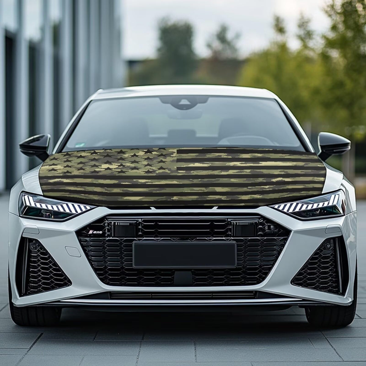 Qiyupavto Car Hood Cover, Green Camouflage American Flag Car Hood Protector Auto Hood Flag Waterproof Universal Auto Decorative
