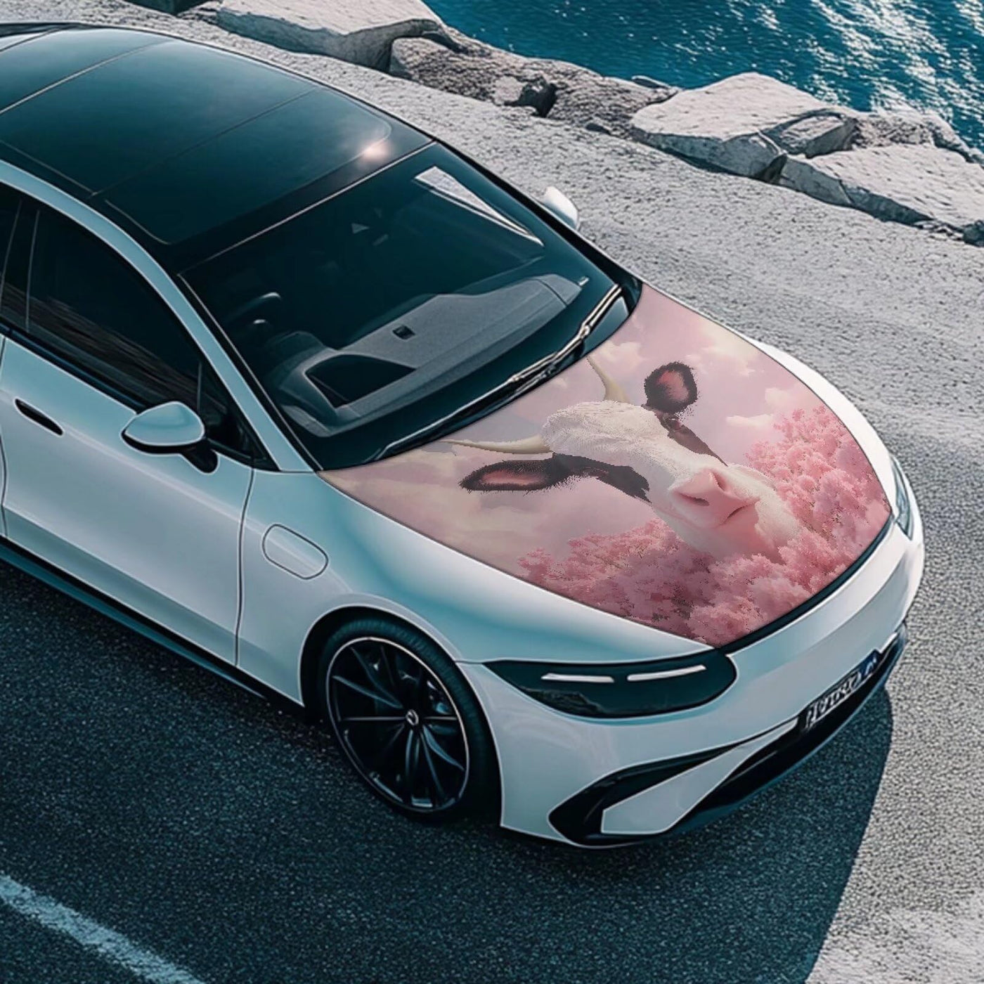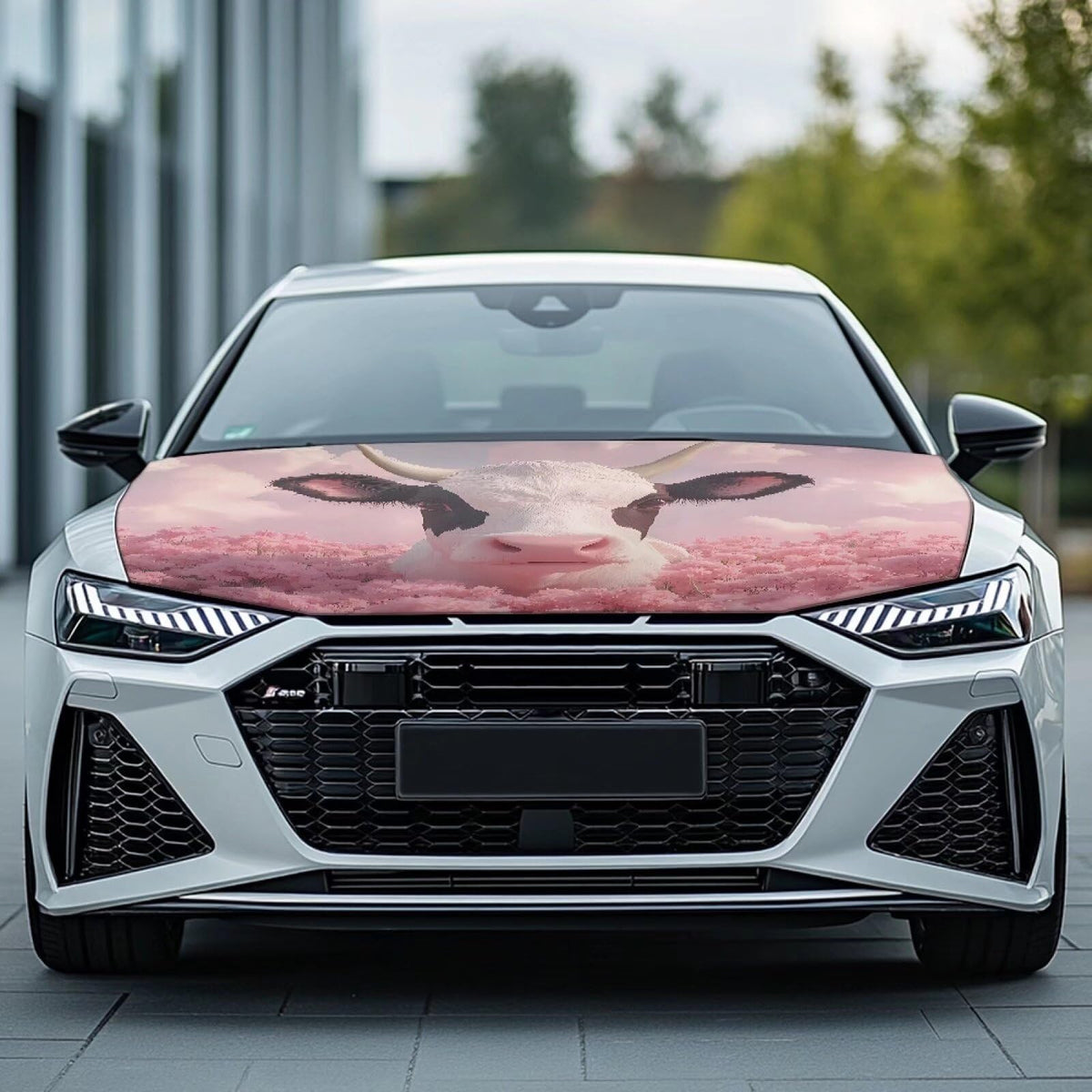 Qiyupavto Pink Flower Cow Print Car Hood Cover, Stretch Fabric Car Hood Protector Washable Universal Auto Exterior Accessorie fo