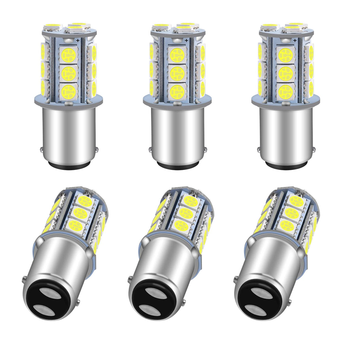 Qoope 6-Pack 1076 Led Bulb For Rv, 1142 1004 Ba15D White Light Bulb Replacement For 12V Camper Trailer Motorhome Boat Interior Light, 5050 18Smd Double Contact Bayonet,#90 Yard Landscape Bulb