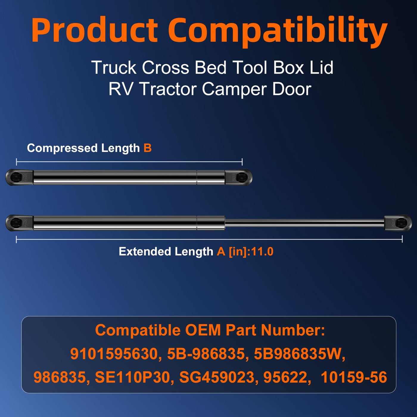 Qty (2) 10159-56 11In Universal Gas Strut Shock Spring Prop -35Lb/155N- Lift Support For Delta Single Lid Aluminum Crossover Tru