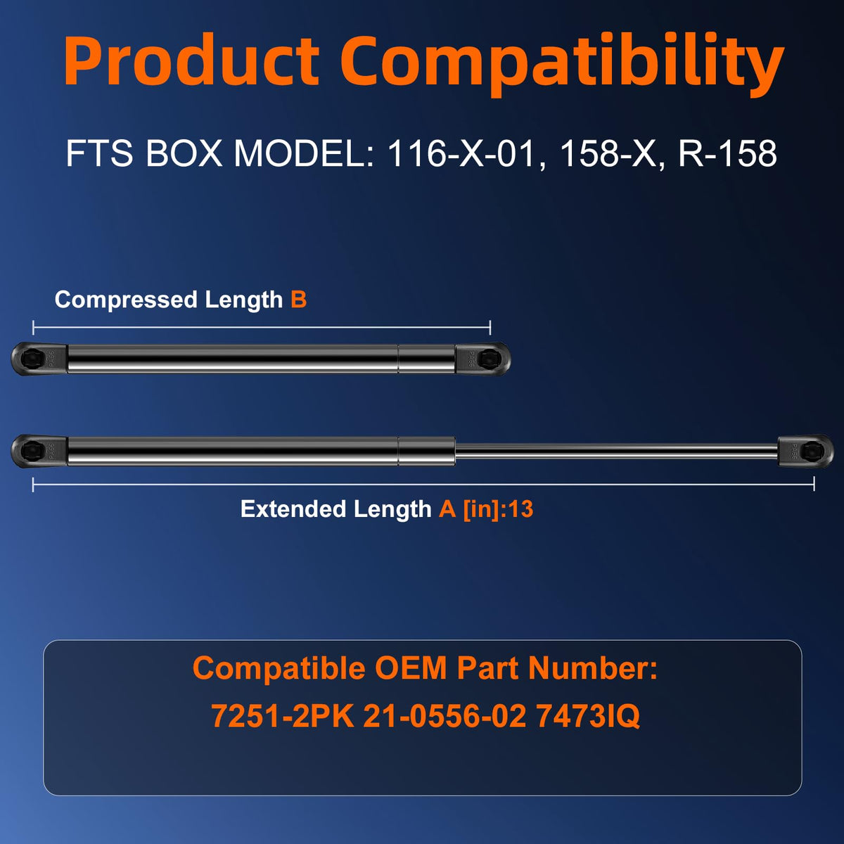 Qty (2) 13In 7251-2Pk Tool Box Gas Shock Strut For Weather Guard Steel And Aluminum Saddle Box, 21-0556-02 7473Iq Lift Support F