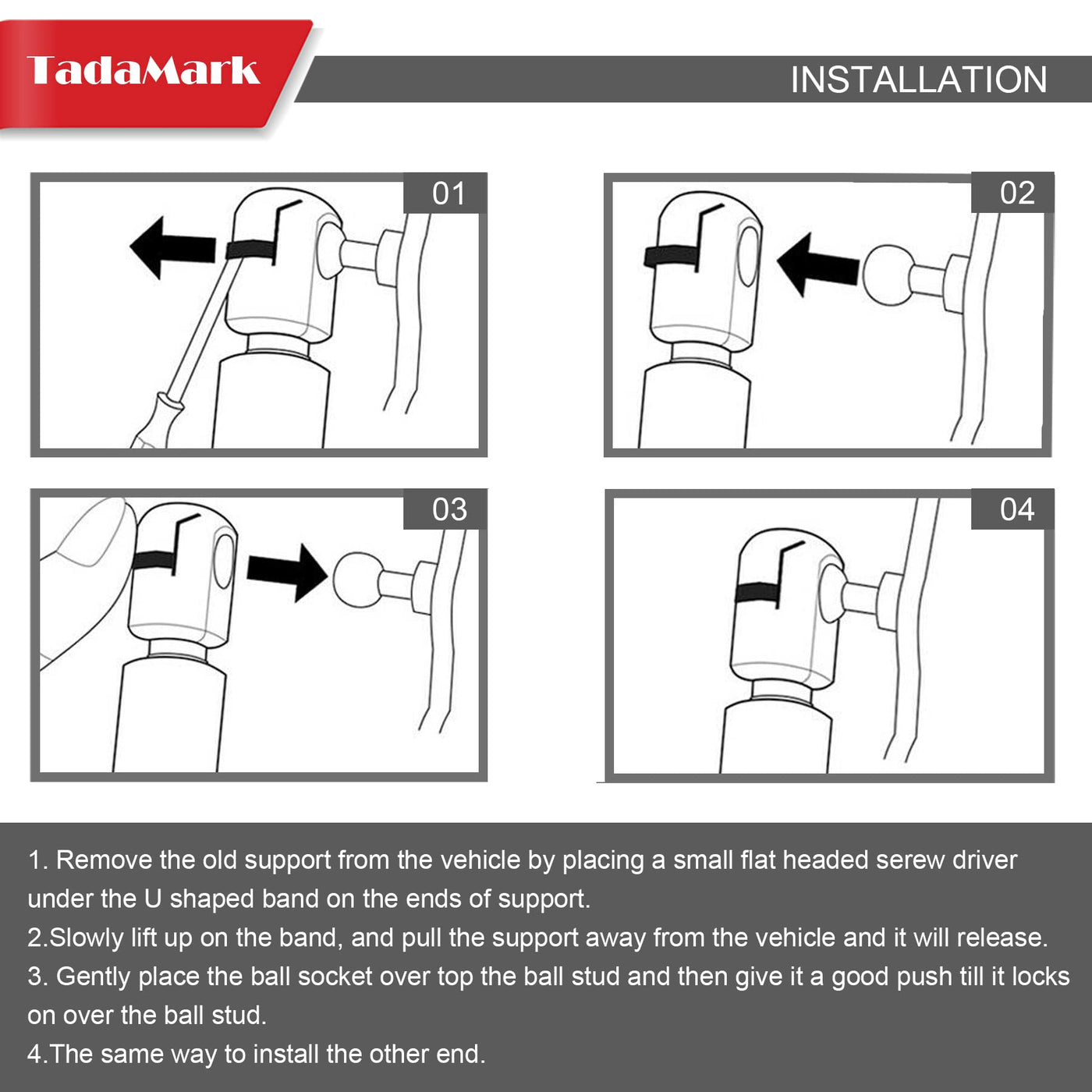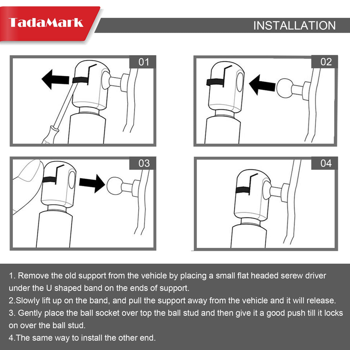 Q: How do I install the rear window lift supports?A: Installation of the rear window lift supports is straightforward. The package includes one rear window right lift support and one rear window left lift support, designed for easy installation. Ensure to follow the included instructions or consult a professional if you are unsure.