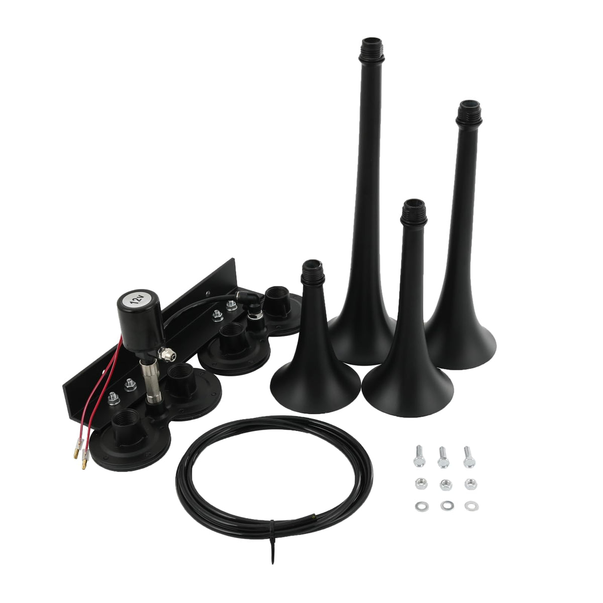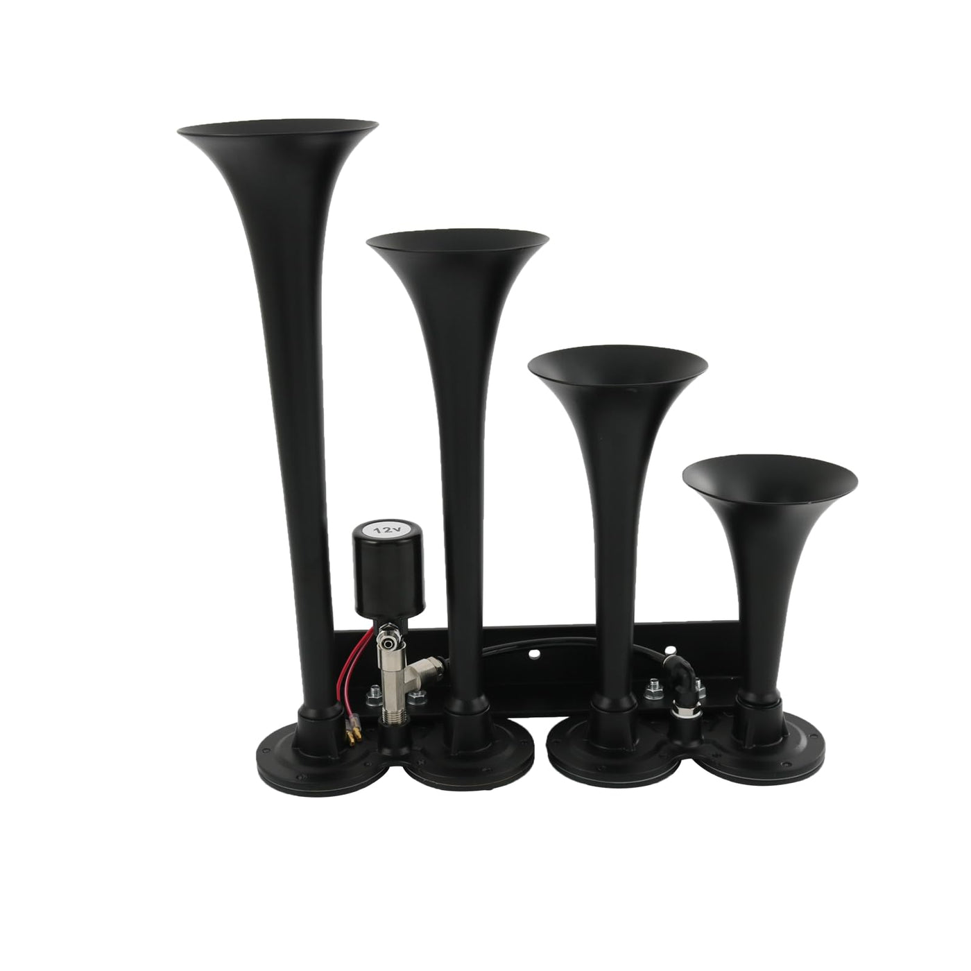 Quad Trumpet InLine 12 Volt 4 Trumpet Train Air Horn Universal Super Loud dB with12V Electric Solenoid For 12v Vehicles SUV pick