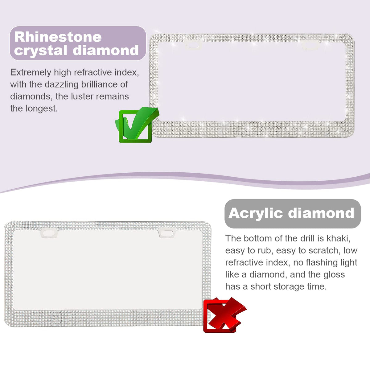 Quanqiufei 2 Pack Bling License Plate Frames For Women, Sparkly Rhinestone Diamond Car Accessories For Women, Handcrafted Stainl