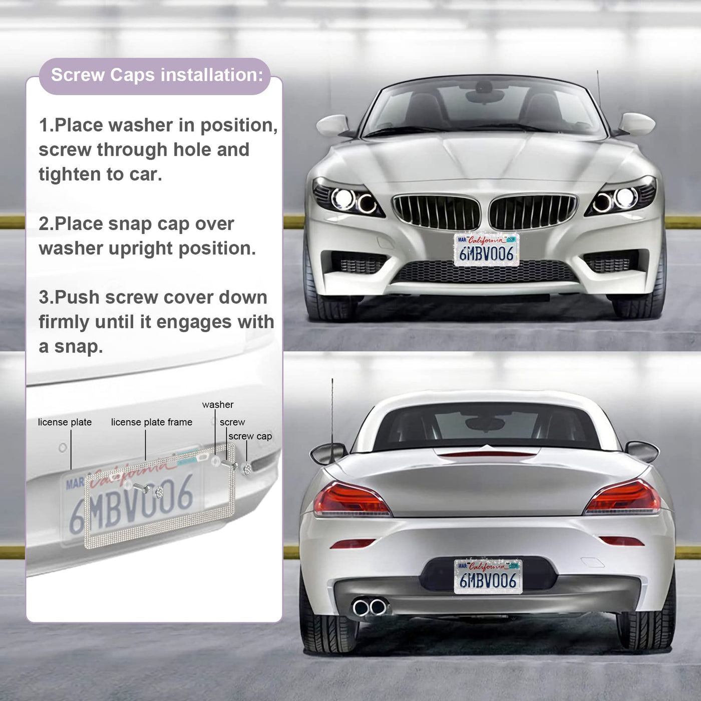 Q: How do I clean and maintain the rhinestone license plate frames?A: To maintain the sparkle of the rhinestones, gently wipe the frames with a soft, damp cloth. Avoid using harsh chemicals or abrasive materials that could scratch the surface.