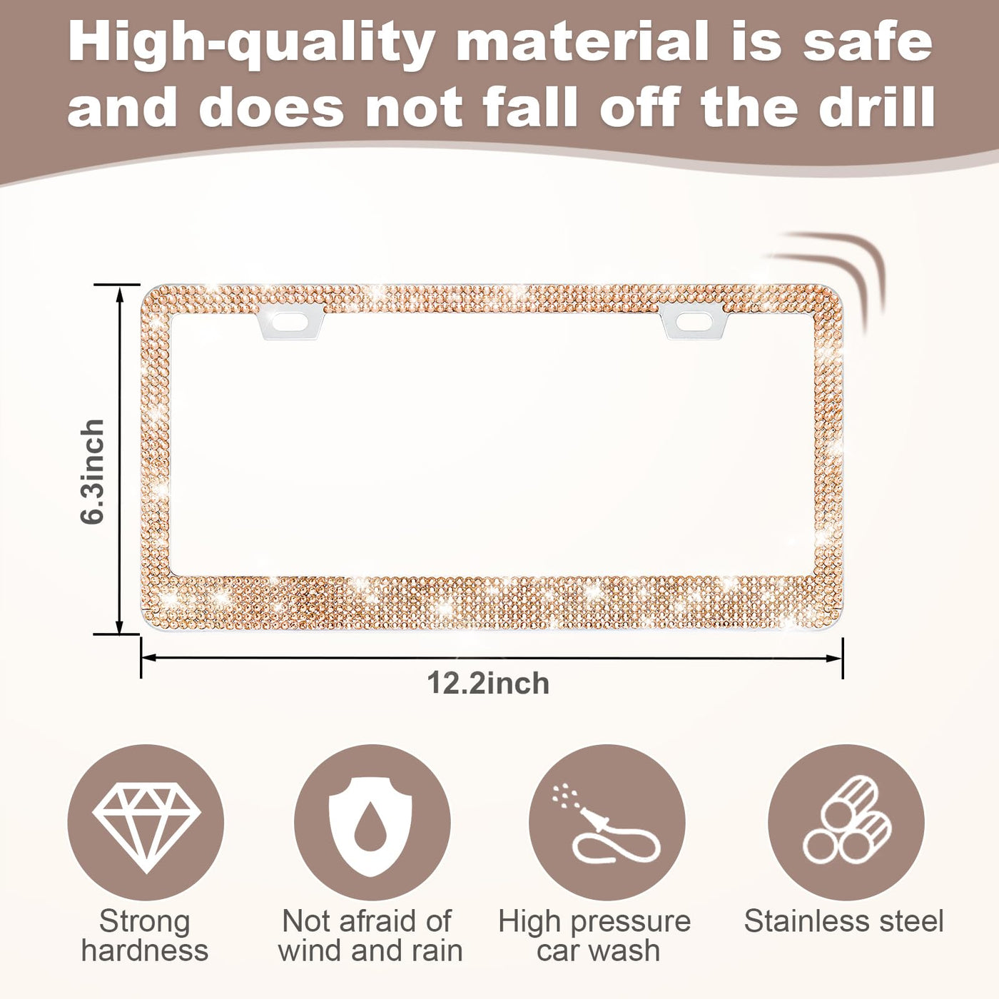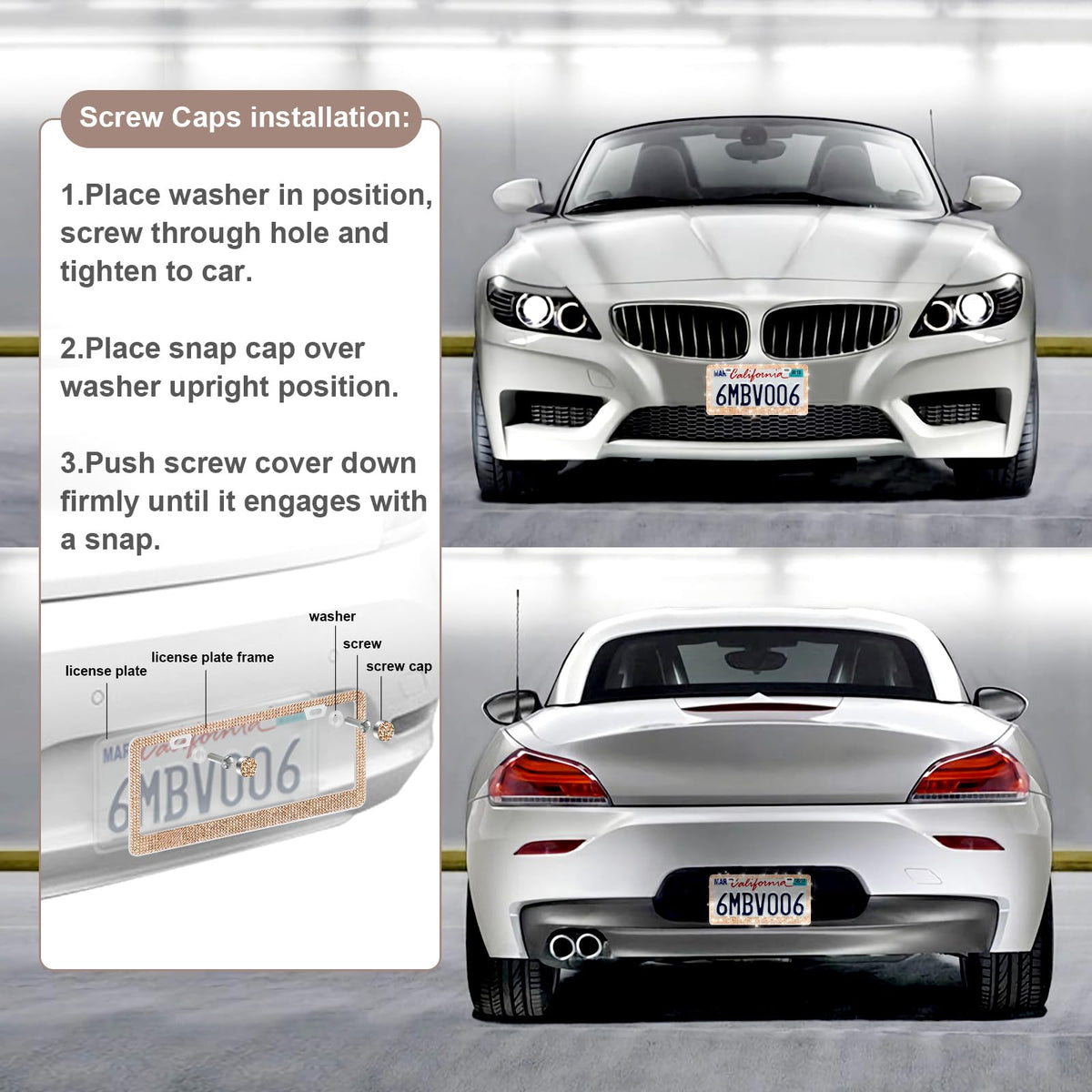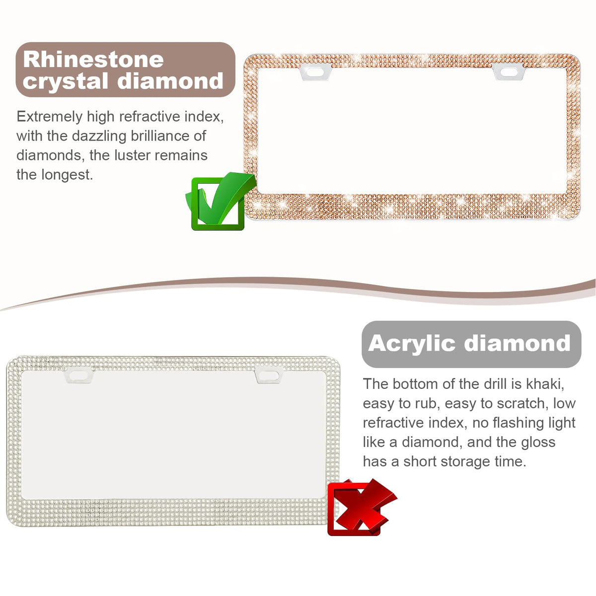 Quanqiufei 2 Pack Bling License Plate Frames For Women, Sparkly Rhinestone Diamond Car Accessories With Glitter Crystal Caps (Ch