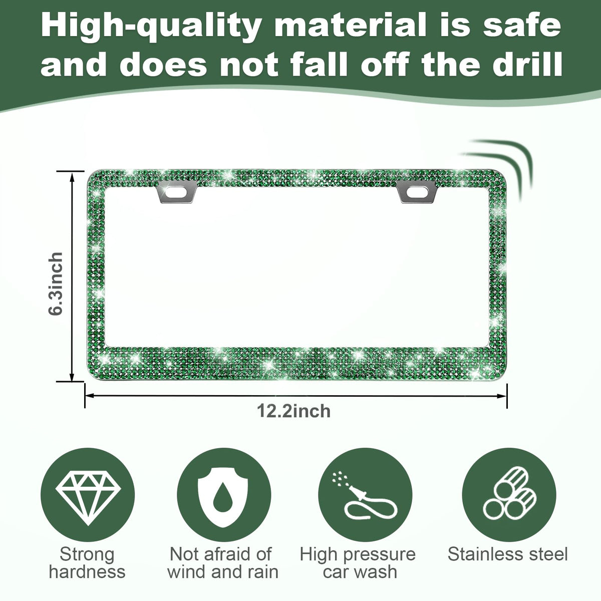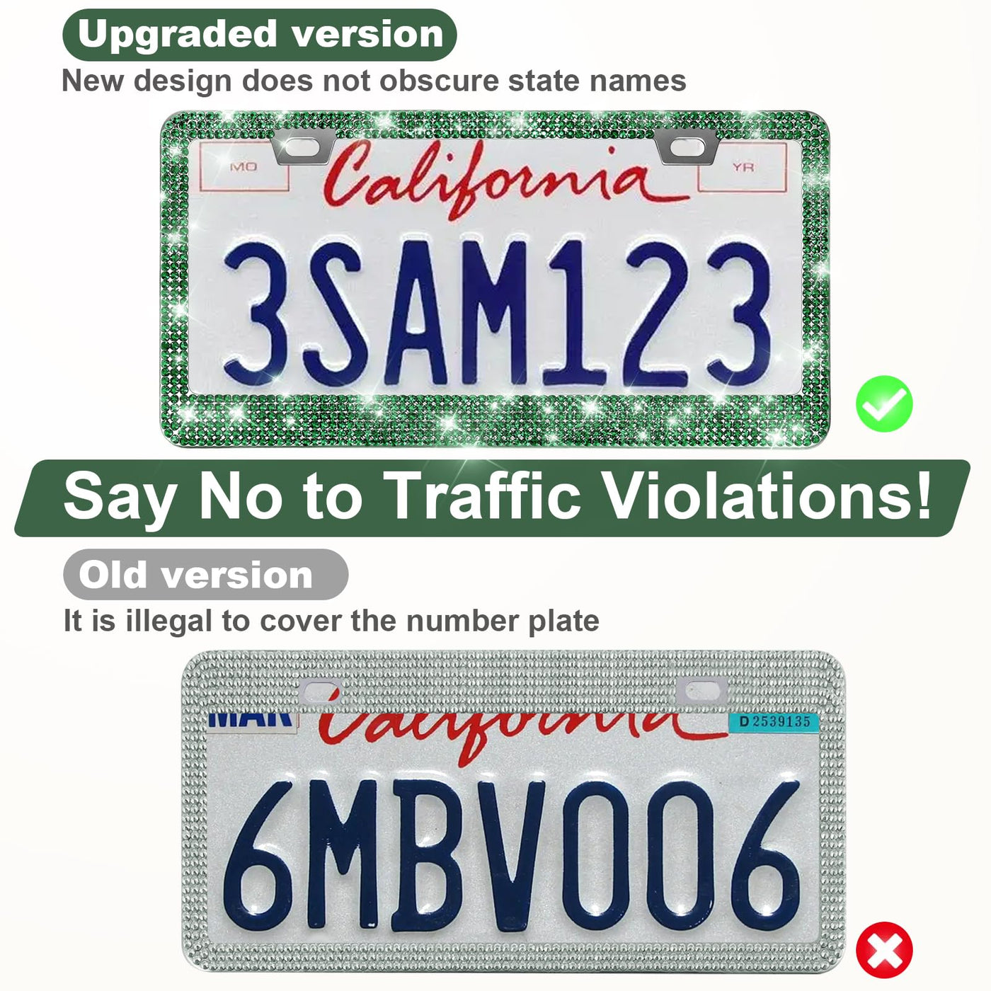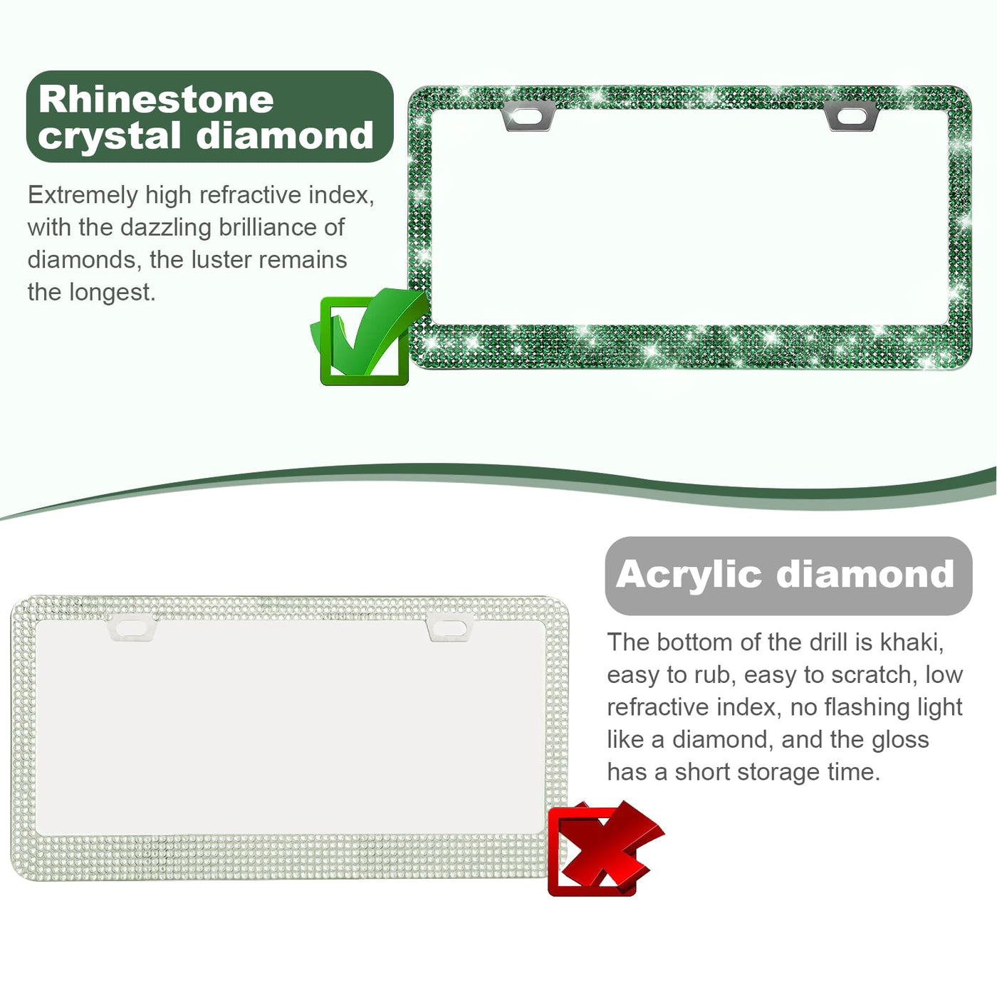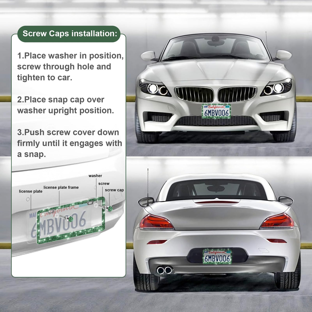 Quanqiufei 2 Pack Bling License Plate Frames For Women, Sparkly Rhinestone Diamond Car Accessories With Glitter Crystal Caps (Da