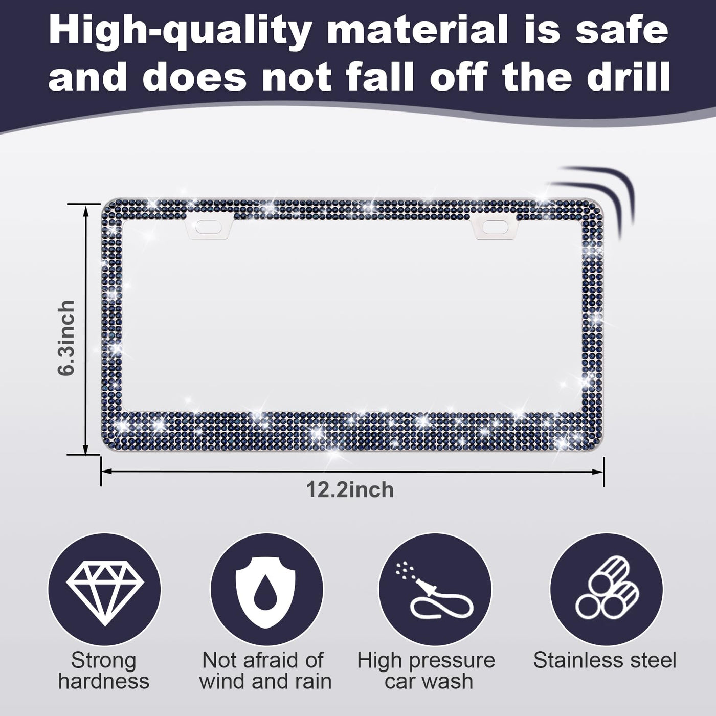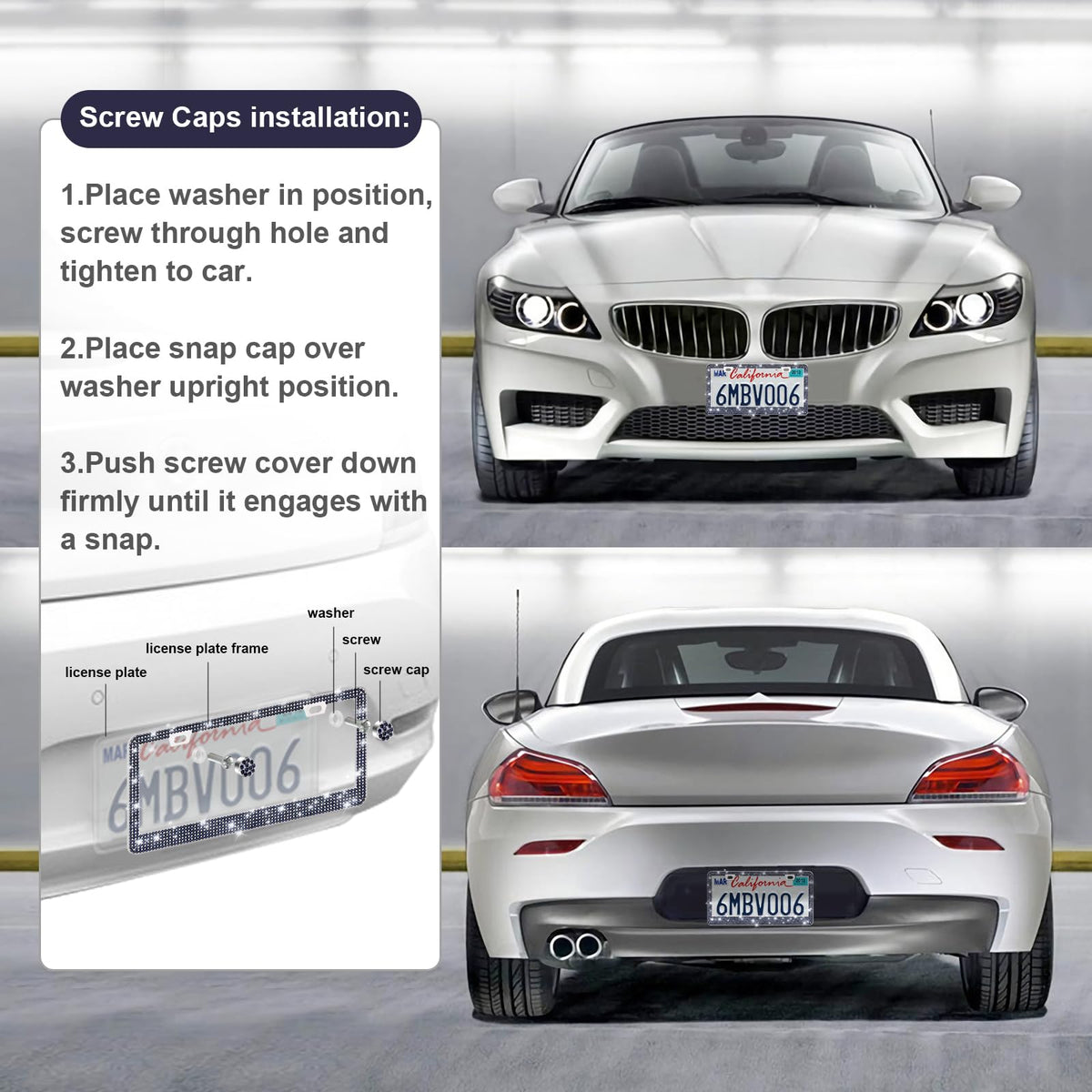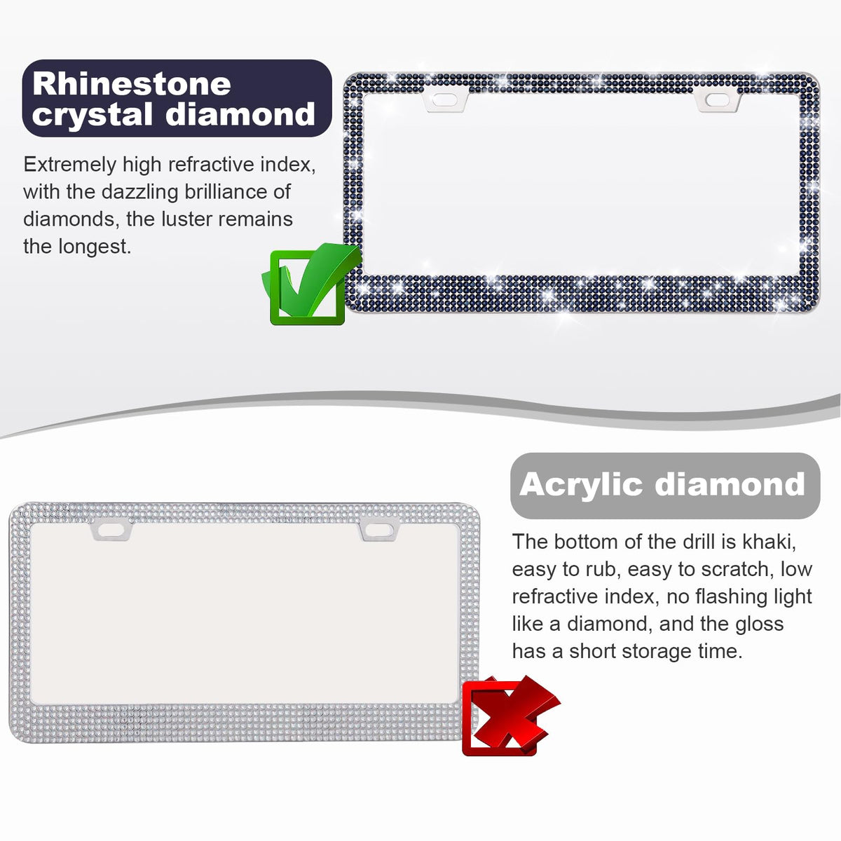 Quanqiufei 2 Pack Bling License Plate Frames For Women, Sparkly Rhinestone Diamond Car Accessories With Glitter Crystal Caps (Na