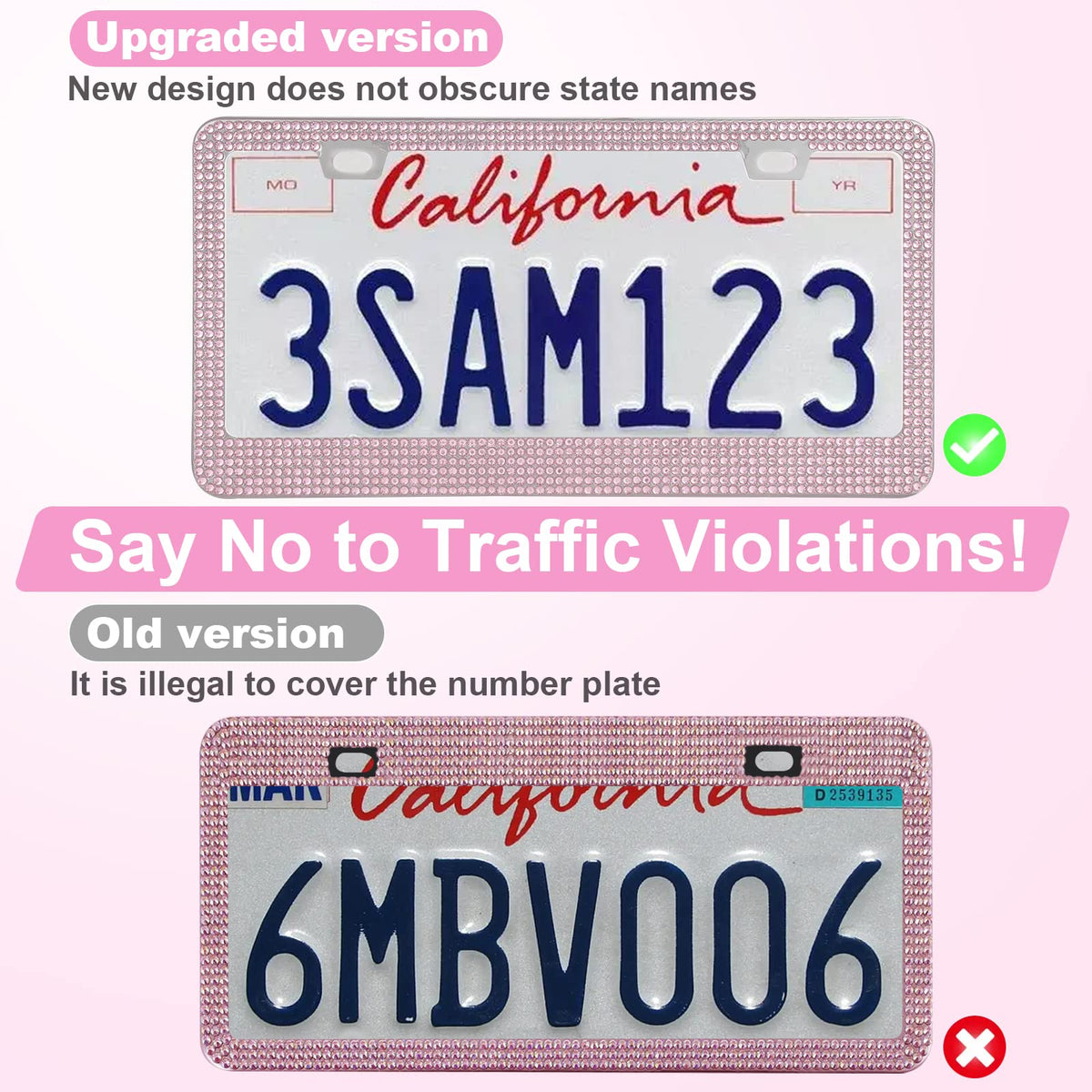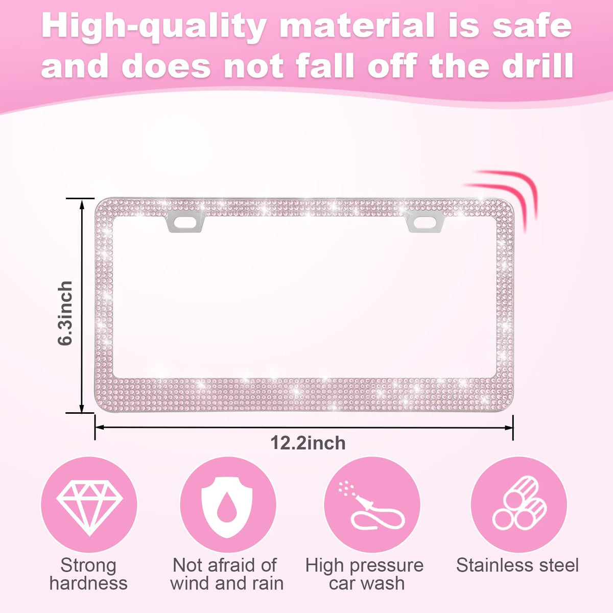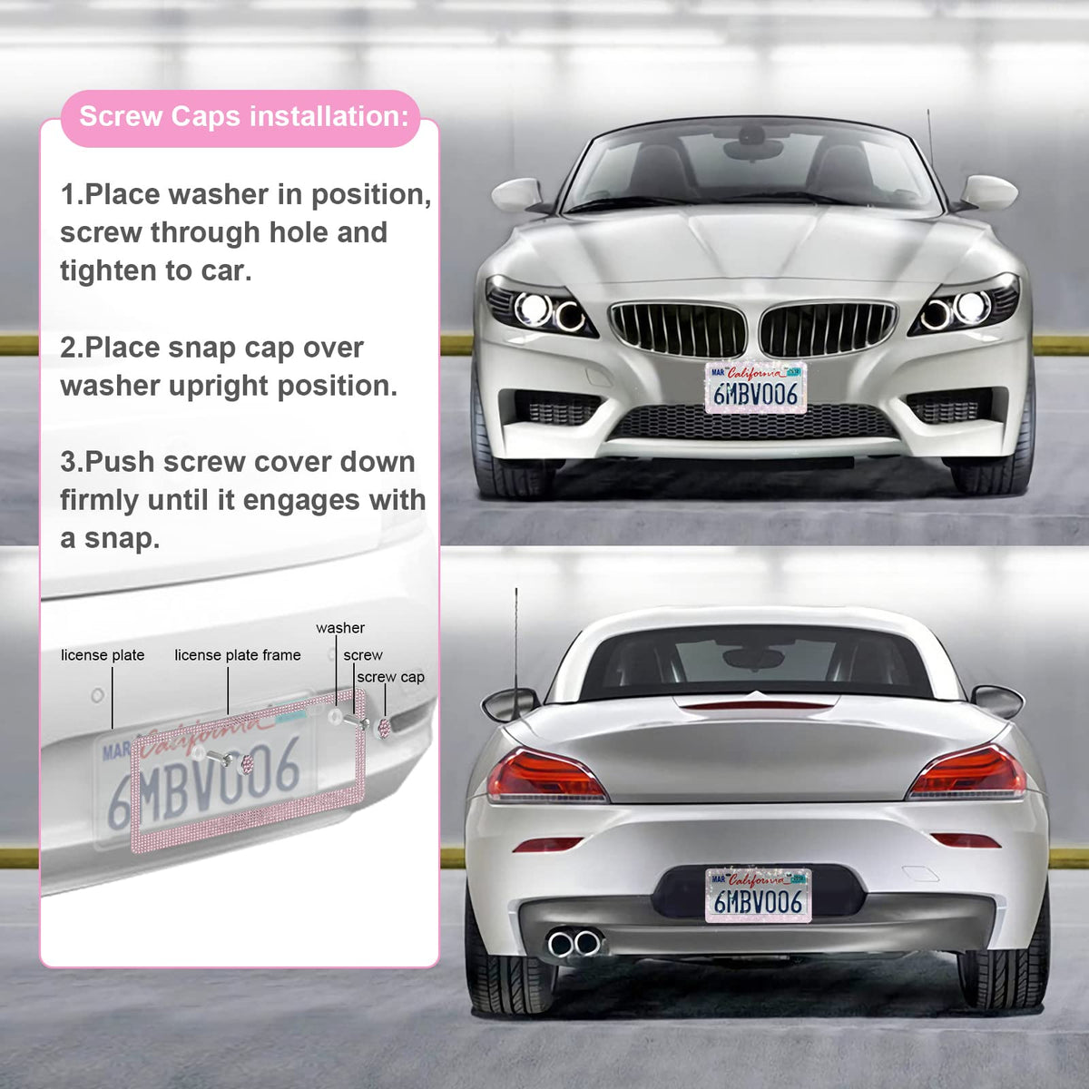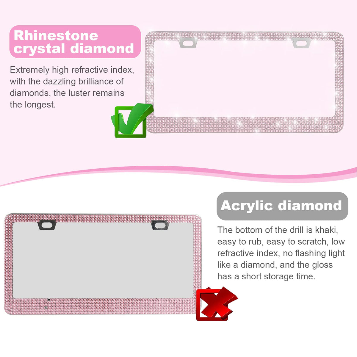 Quanqiufei 2 Pack Bling License Plate Frames For Women, Sparkly Rhinestone Diamond Car Accessories With Glitter Crystal Caps (Pi