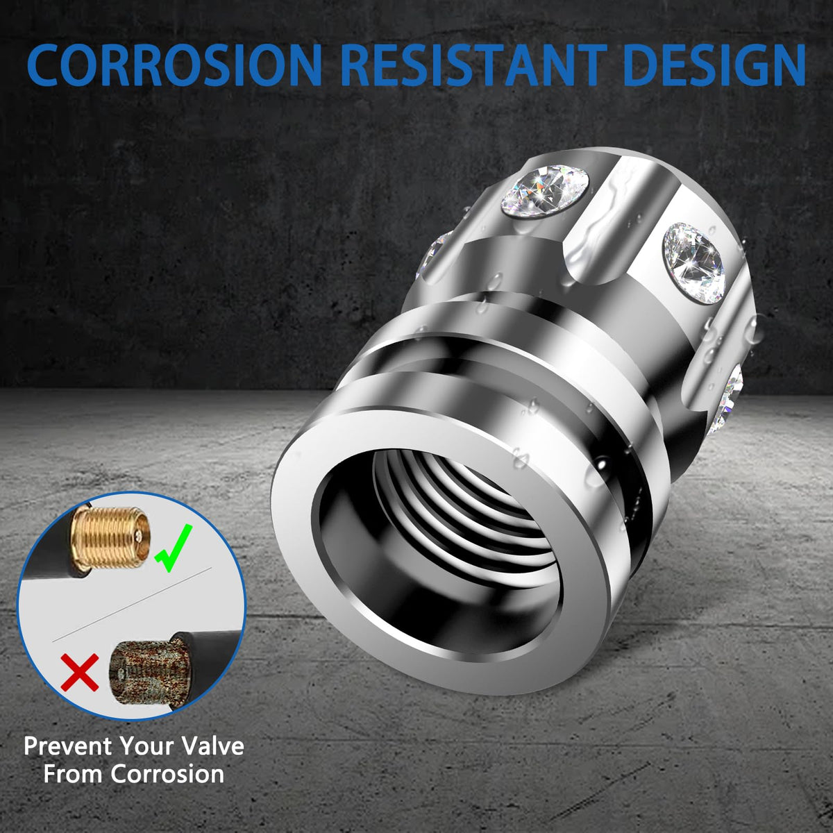 Quarkace Tire Valve Caps, Bling Valve Stem Caps With Sparkly Rhinestones, Tire Caps 4 Pack For Cars Suvs Trucks Motorcycles Bike