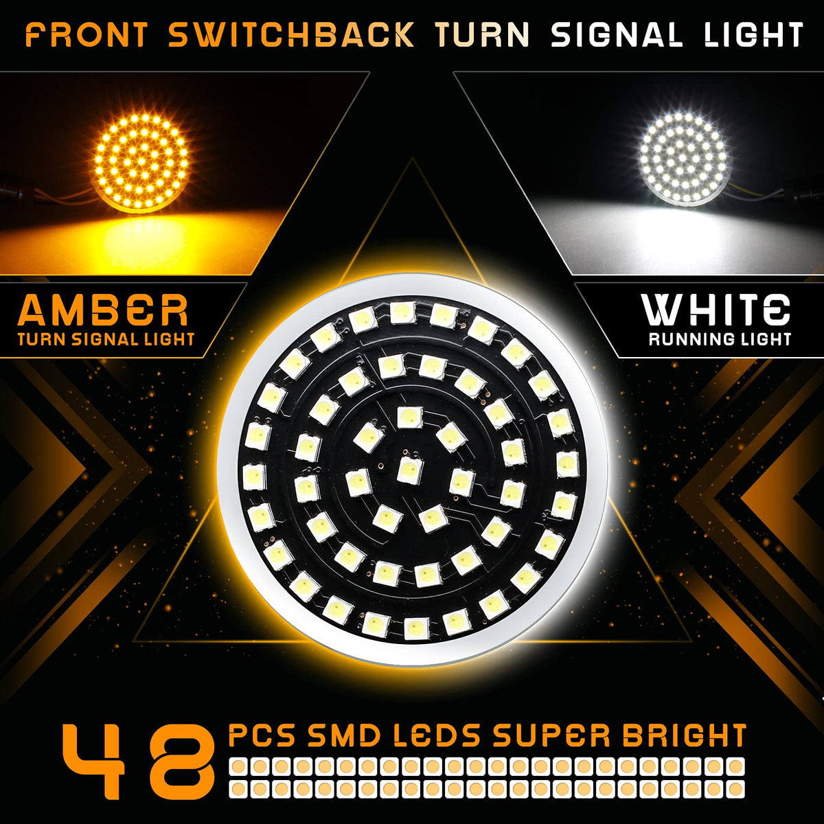 Front Switchback Light Operation: Full Led Illuminate White Acting As Daytime Running Lights And Switch To Amber When Turn Signals Activated. Leds Return To White When Turn Signal Is De-Activated