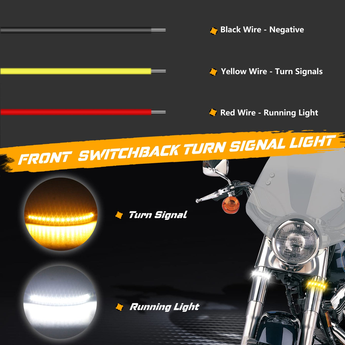 Features: Front Switchback Light Operation: Led Illuminate White Acting As Daytime Running Lights And Switch To Amber When Turn Signals Activated. Leds Return To White When Turn Signal Is De-Activated Sequential Flashing, Front Turn Signals Flash Sequentially Easy Installation, Splice Wire Onto Existing Wire Harness Ip67 Waterproof, Sealed Well, Keep Water Out Even In Heavy Rain