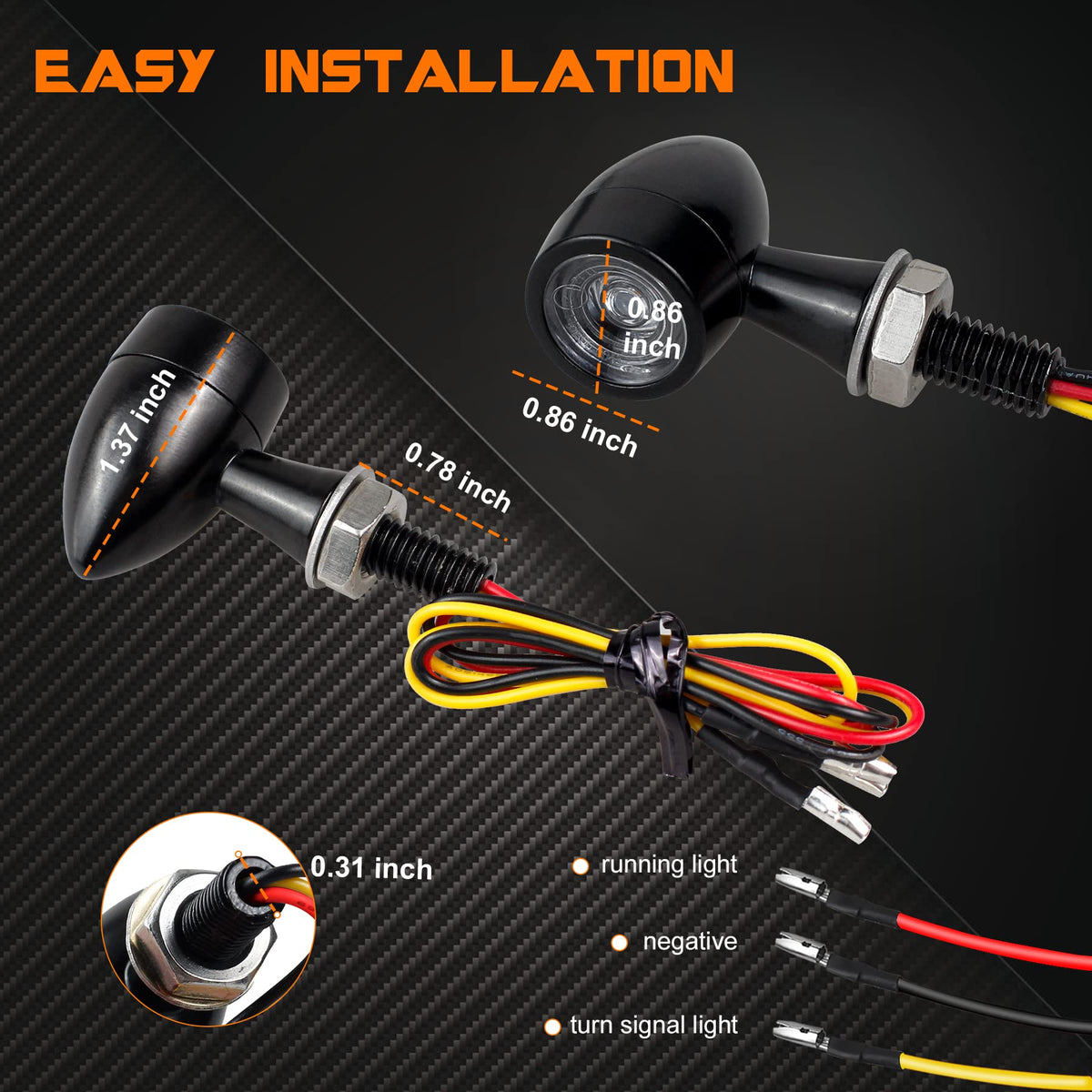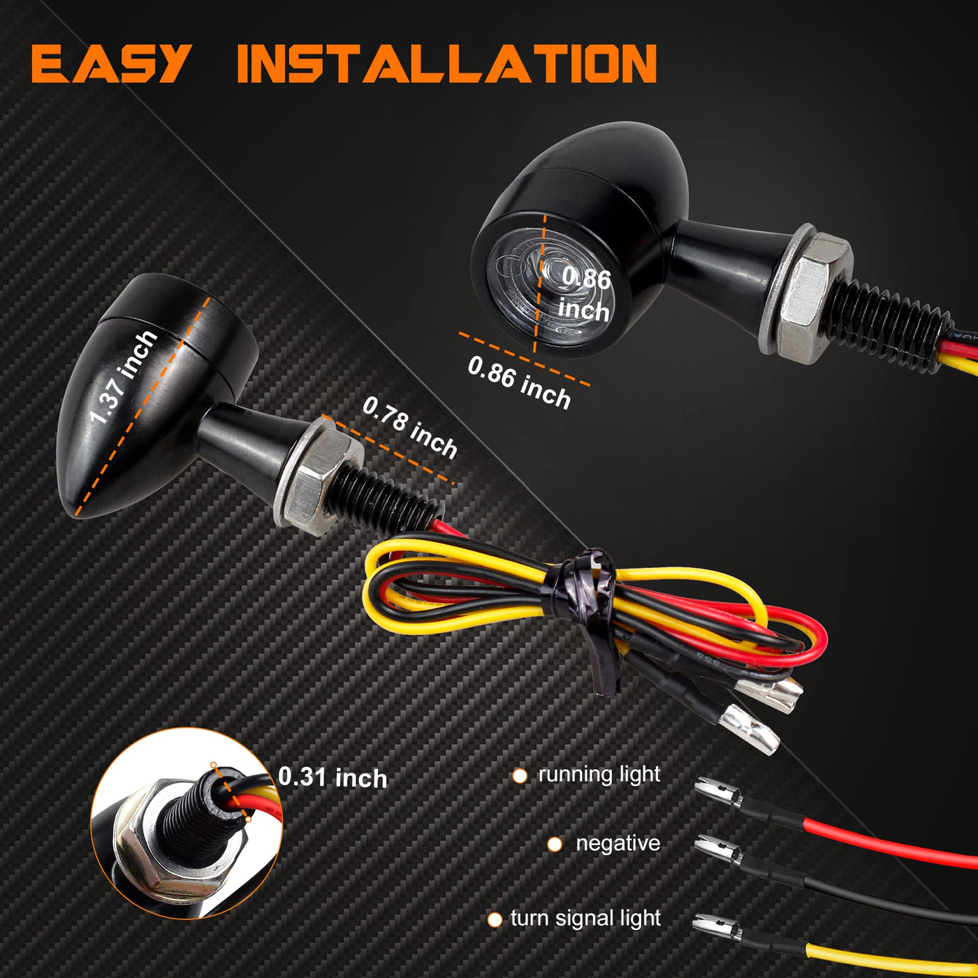 Quasco Universal Motorcycle Turn Signals Amber/Red Led Turn Signal Kit Rear Mini Blinkers Compatible With Harley Honda Suzuki Tr
