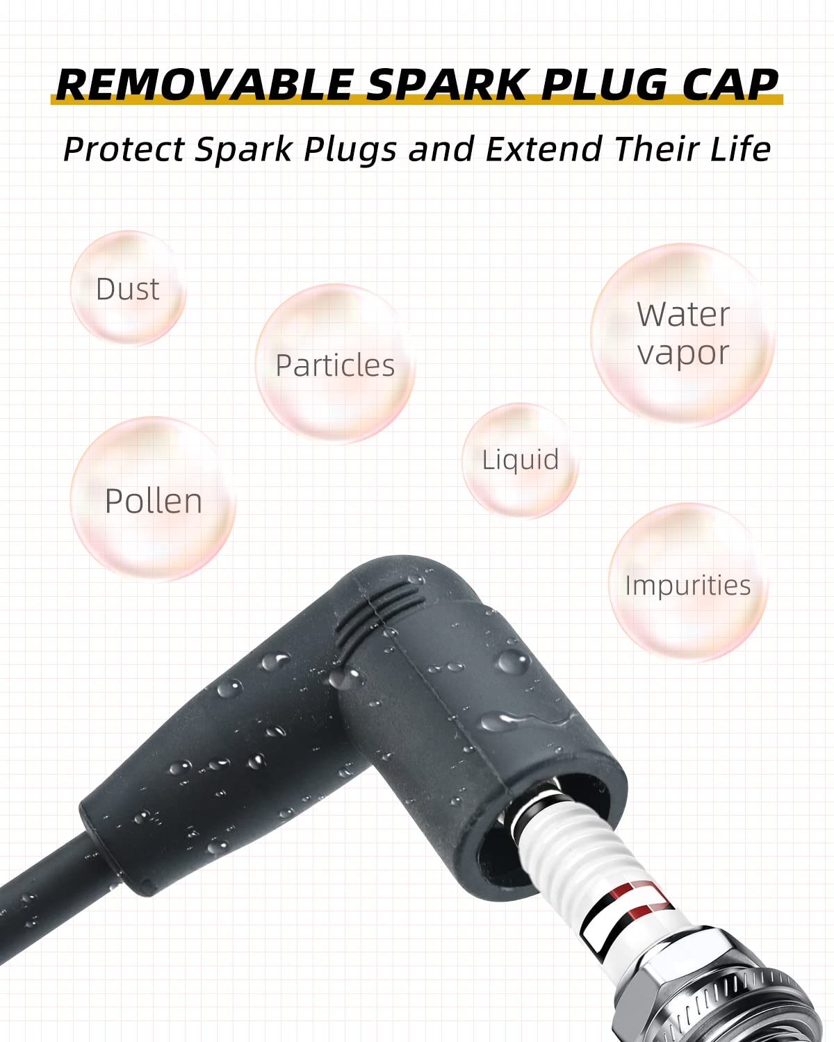 Q: What protective features does the Quickwolf spark plug cap offer?A: The Quickwolf spark plug cap effectively protects against impurities such as dust, moisture, and grease, ensuring the proper functioning of the ignition system. This protection helps maintain optimal performance and longevity of the spark plug.