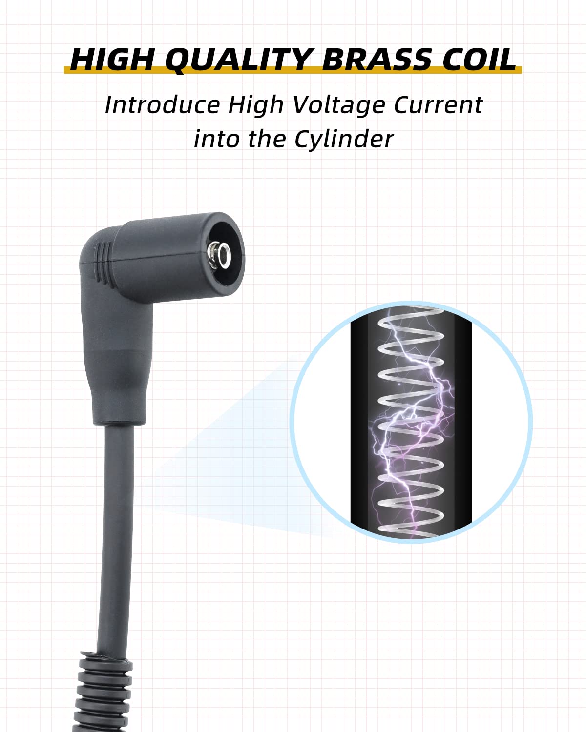 Q: How does the Quickwolf spark plug wire ensure durability and reliability?A: The Quickwolf spark plug wire is designed to withstand high temperatures while maintaining its performance and shape over time. Its flexible plastic tube prevents the internal rubber ring from directly contacting the engine cylinder block, reducing the risk of softening due to heat.