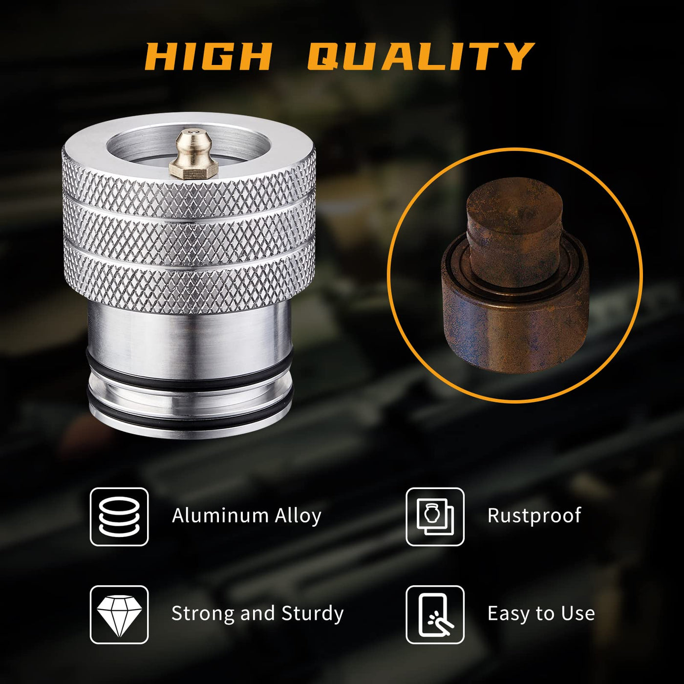 Q: Is the QUICKWOLF wheel bearing grease tool easy to use?A: Yes, the QUICKWOLF wheel bearing grease tool is very easy to use. Simply insert the tool into the bearing and add oil using a grease gun. This process allows for axle lubrication without the need to remove the wheel hub, making it a convenient solution for maintaining your vehicle.