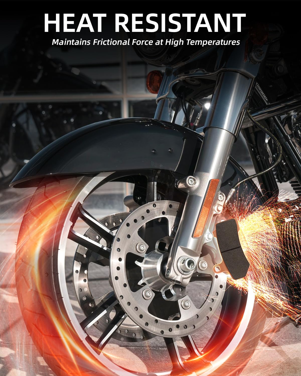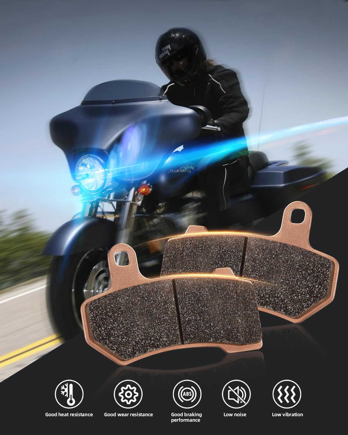 Compatible With Quickwolf Sintered Brake Pad For Harley Davidson 08-22 Flhr Road King Flhx Street Glide, 08-20 Flhtcu Ultra Classic Electra Glide Vrscdx Night Rod,15-22 Road Glide Fltrx Limited And Flhxs Street Glide Special | ?Superior Braking Performance? Crafted Using Specialized Sintering Techniques, Quickwolf Sintered Brake Pads Blend Metal Powders With Proprietary Additives, Resulting In Outstanding Braking Capabilities. Experience Shorter Braking Distances And Enhanced Stability During Braking Maneuvers. | ?Exceptional Wear Resistance? Constructed From High-Quality Materials, These Brake Pads Exhibit Remarkable Wear Resistance. Maintain Optimal Braking Efficiency Over Extended Periods, Significantly Reducing The Need For Frequent Replacements And Lowering Maintenance Costs. | ?Excellent High-Temperature Durability? Even When Rapidly Heated To 900-1000°C Or Exposed To Prolonged Temperatures Of 300-450°C, These Pads Retain Their Mechanical Integrity And Performance. Grooved Design Enhances Heat Dissipation During Braking While Directing Dust Away, Preventing Overheating-Related Brake Malfunctions. | ?Low Noise And Vibration? Enjoy Smoother And Quieter Braking With Quickwolf Sintered Brake Pads, Minimizing Noise And Vibration Generated During The Braking Process. Enhance Driving Comfort And Diminish Discomfort For Both Drivers And Passengers.