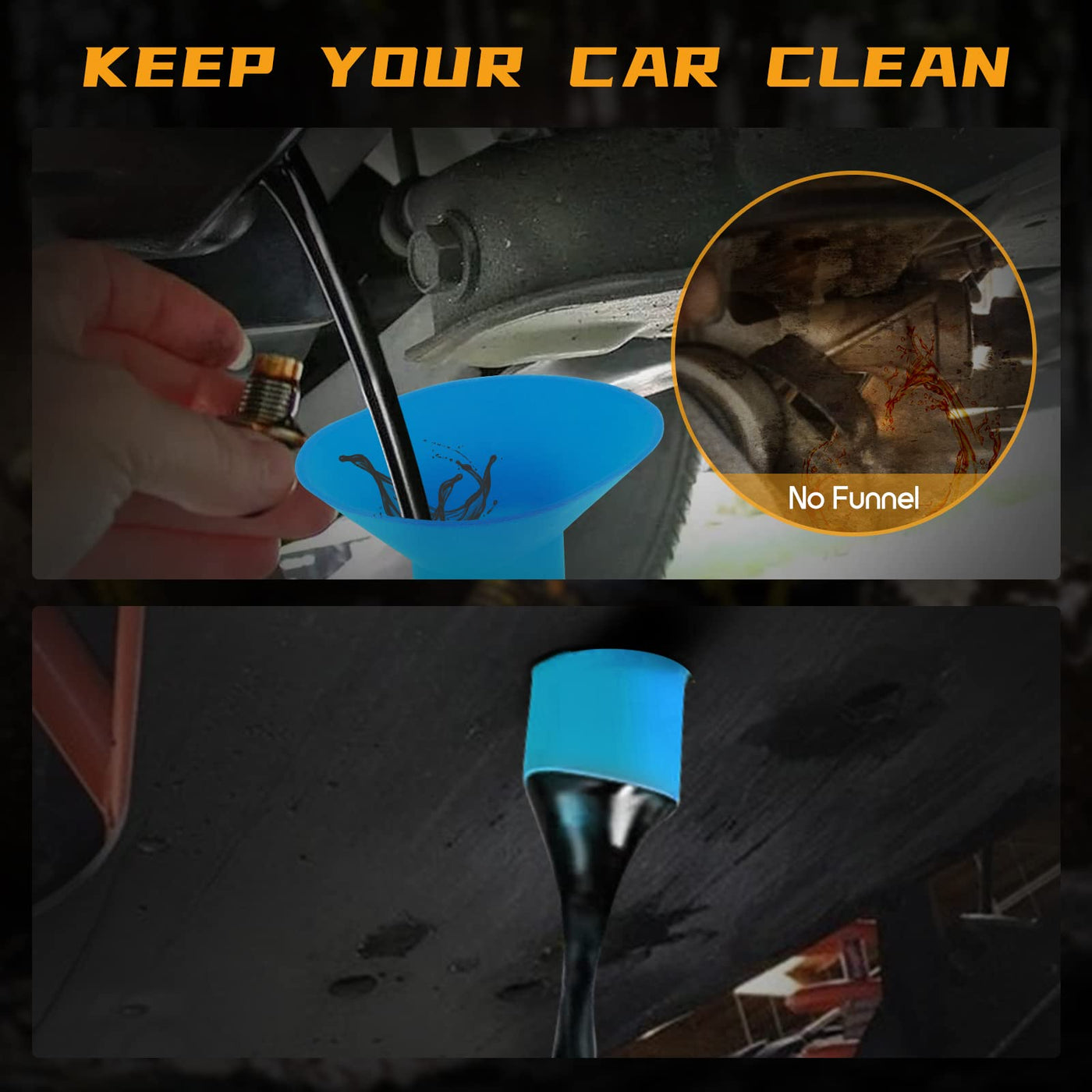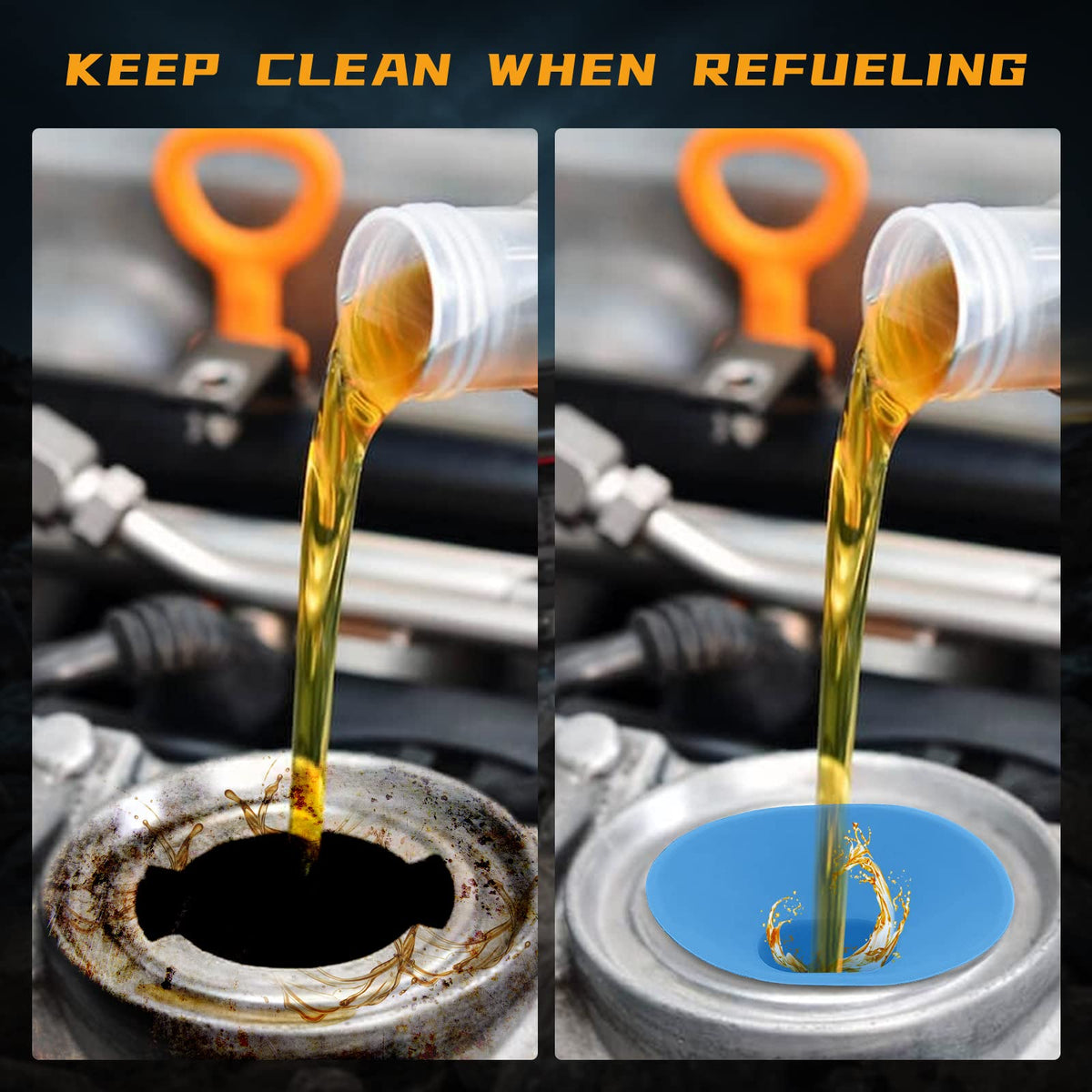 Q: How does the oversized diameter design help during oil changes?A: The oversized diameter design of the QUICKWOLF funnel helps prevent spills and keeps your vehicle clean by directing oil precisely where it needs to go without contamination.