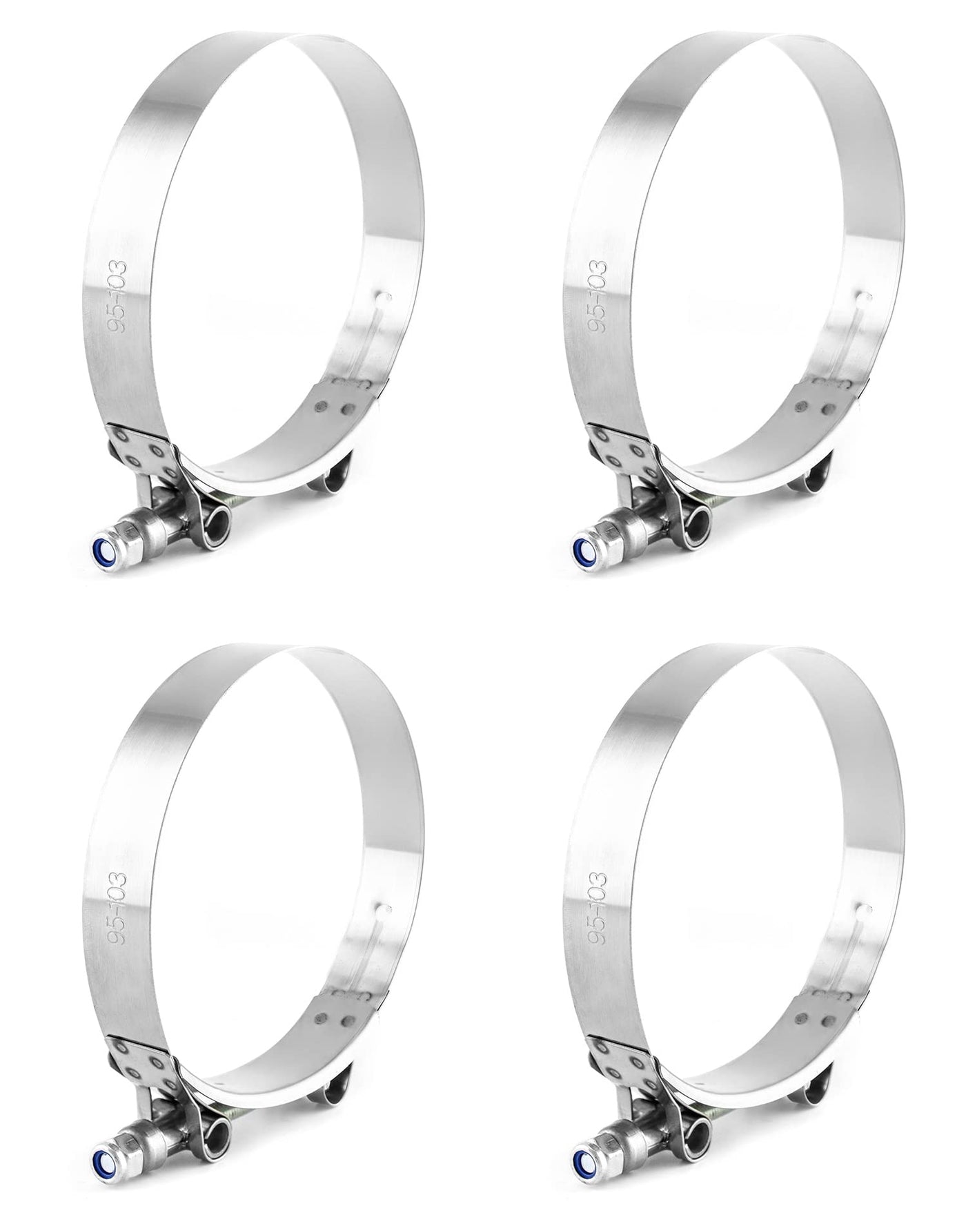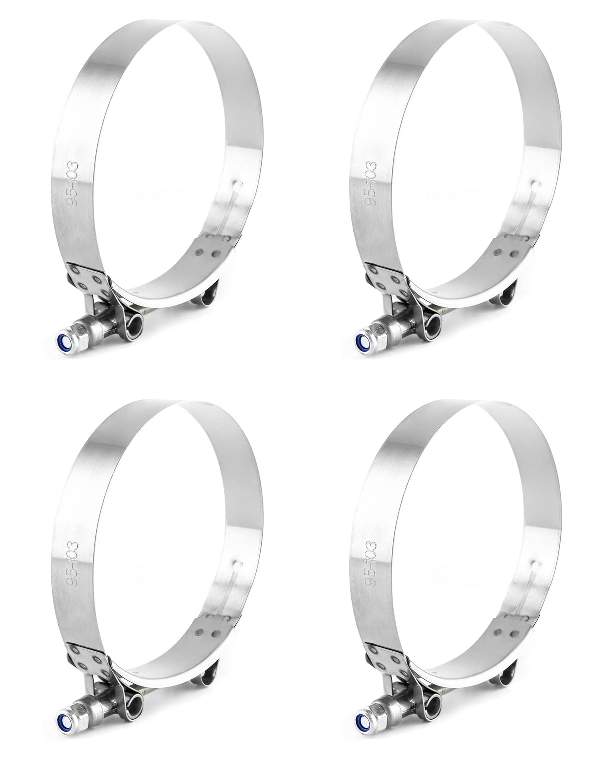 Qwork 3.5'' T-Bolt Hose Clamp Stainless Steel, Working Range 95Mm - 103Mm For 3.5'' Hose Id, Turbo Intake Intercooler Clamp, 4 P