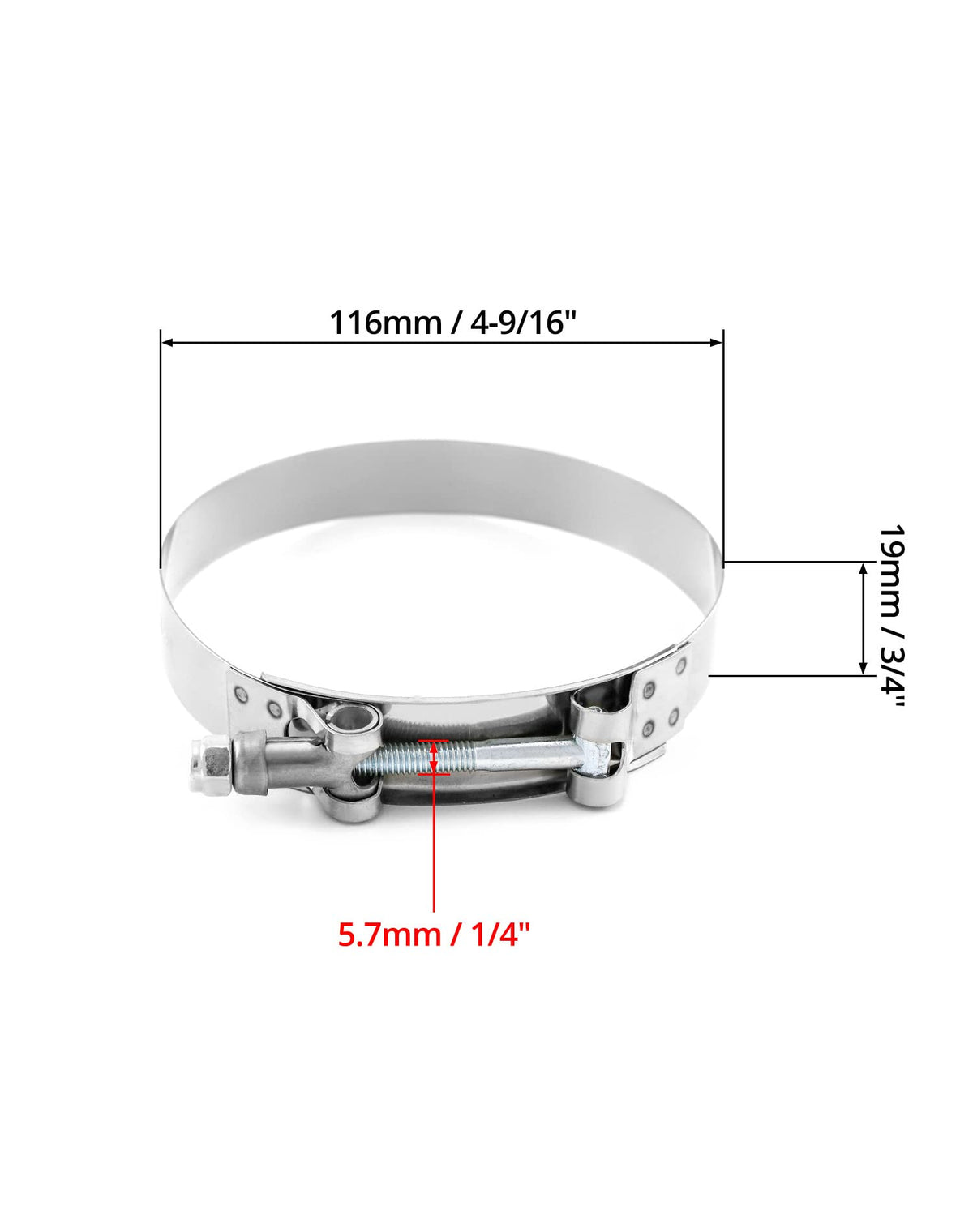 Qwork 4'' T-Bolt Hose Clamp Stainless Steel, Working Range 108Mm - 116Mm For 4'' Hose Id, Turbo Intake Intercooler Clamp, 4 Pack