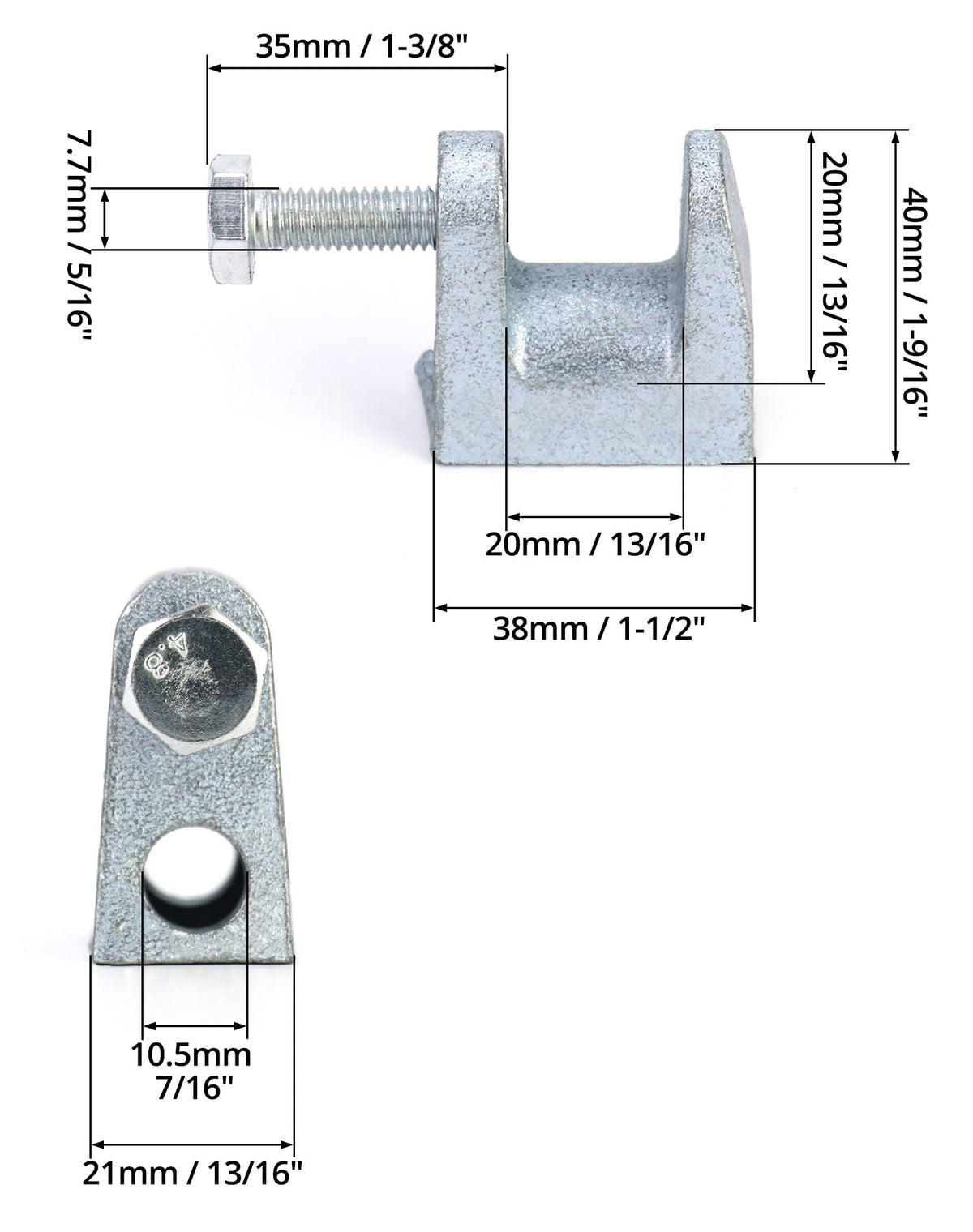Material: Premium malleable cast iron and Zinc coating, anti-corrosion and durable. | Rod(thread) Size: 3/8", Max Jaw Opening: 13/16". | Max. Load (Lb.): Top of Beam 500 and Bottom 250. | Usage: Suitable for Structural Attachment To Top Or Bottom Of Metal Beams, Or Angle Iron, Purlins.