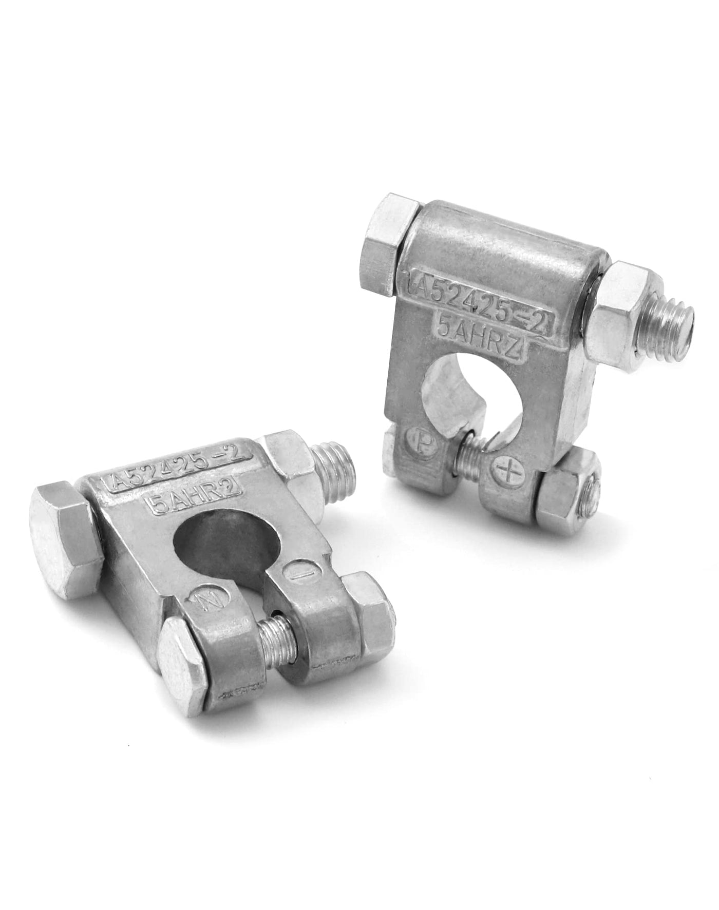 Q: What vehicles are compatible with QWORK Military Spec Battery Terminals?A: QWORK Military Spec Battery Terminals are compatible with cars, RVs, boats, and other vehicles that use standard top post batteries, specifically those with a 19 mm tapered positive and 17 mm tapered negative.