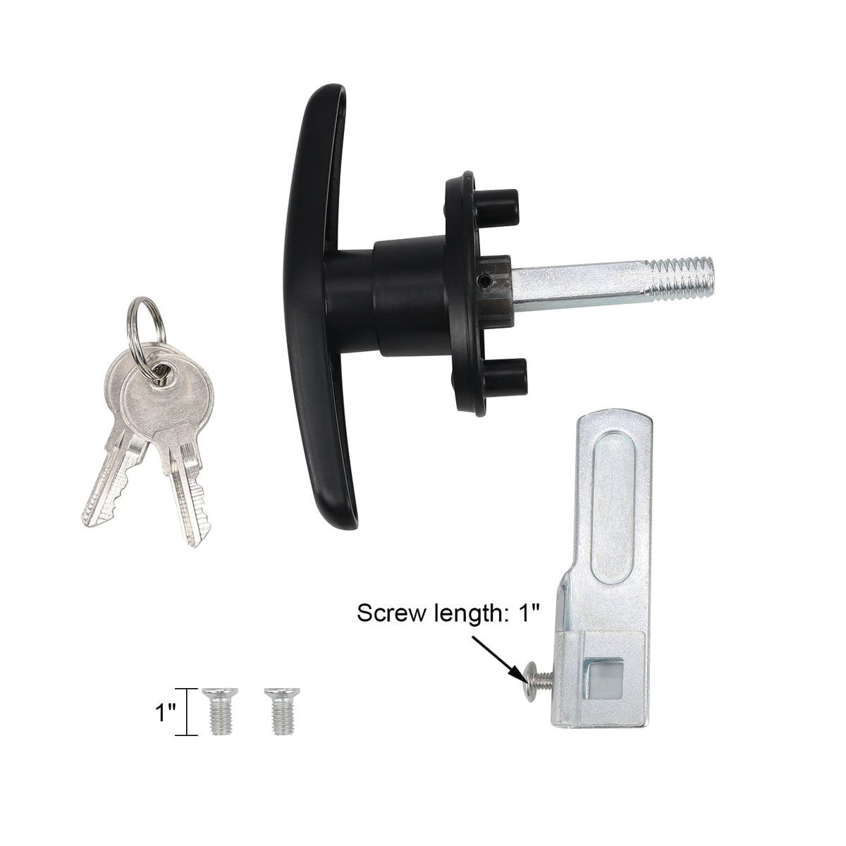 This T-Handle Lock kit for Truck Door is well-designed, compact, and has a clean, attractive look.The T-handle RV door lock is very easy to install. Mounting screws are included. The surface is smooth and bright, and feels comfortable in your hand. The keyed alike black RV garage door lock is easy to lock and unlock. Easy to lock and unlock. Recommended for anyone who needs a replacement T-handle lock.