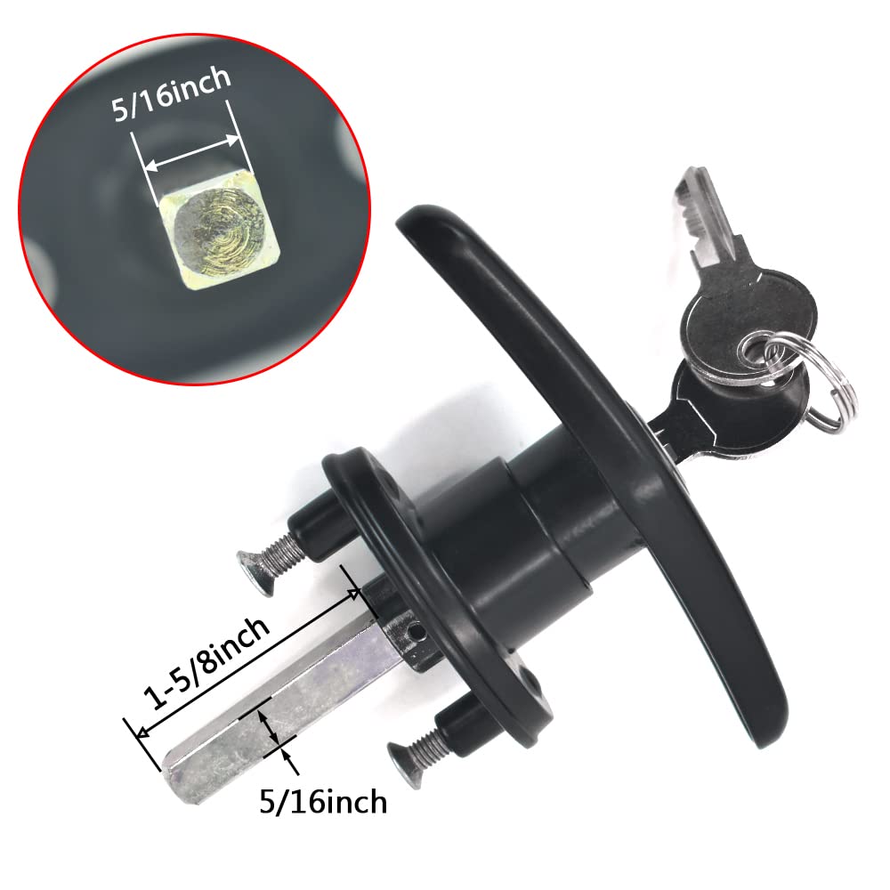 T -Lock for camper shell replacement This T-handle is used for most pickup truck or camper shell install on the pickup truck. You can install one in the middle or you can also install 2 for the same camper shell,1 in the left,1 in the right adjust the locking cam to make sure they turn the same direction Turn Clockwise to lock and Counterclockwise to unlock Durable Material : the lock is covered by Heavy Duty Black Powder Coated Finish smooth and durable in outdoor situation Suitable for most pickup truck such as ford F-series Ram-series Two keys s for each lock Attention 1:These locks are randomly keyed so each lock would have its own unique key-set. 2:Make sure it fits with you're cover and old parts by checking the dimension of our lock with the old one to make sure they match 3:Counter clockwise: The clockwise/counter clockwise is determined by the unlocking direction. Typically 'T' handles are locked in the horizontal position so whichever direction the handle turns to unlock (vertical) would be the handle direction. On the counterclockwise of our T-handles indicates the direction to turn the handle to open the truck cap. (closed position = handle is vertical, open position = handle is horizontal) if you want to open the shell clockwise , just make the handle upright and you can open clockwise (closed position = handle is horizontal , open position = handle is vertical) purchased silicone slip covers for these T handles to protect them from the rain and snow