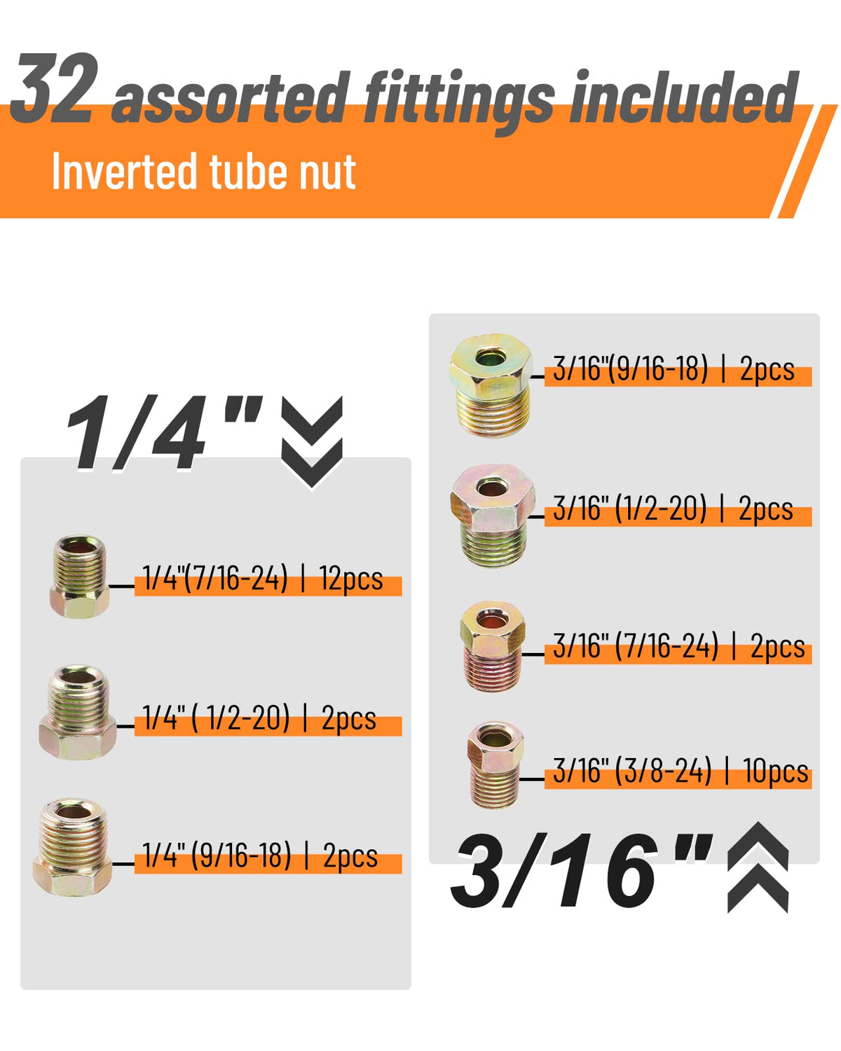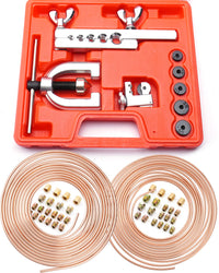 Racewill 25 Ft 3/16' + 1/4' Copper Coated Brake Line Kit (Includes 32 Fittings And 8 Unions)+ Brake Line Double & Single Flaring Tool Kit