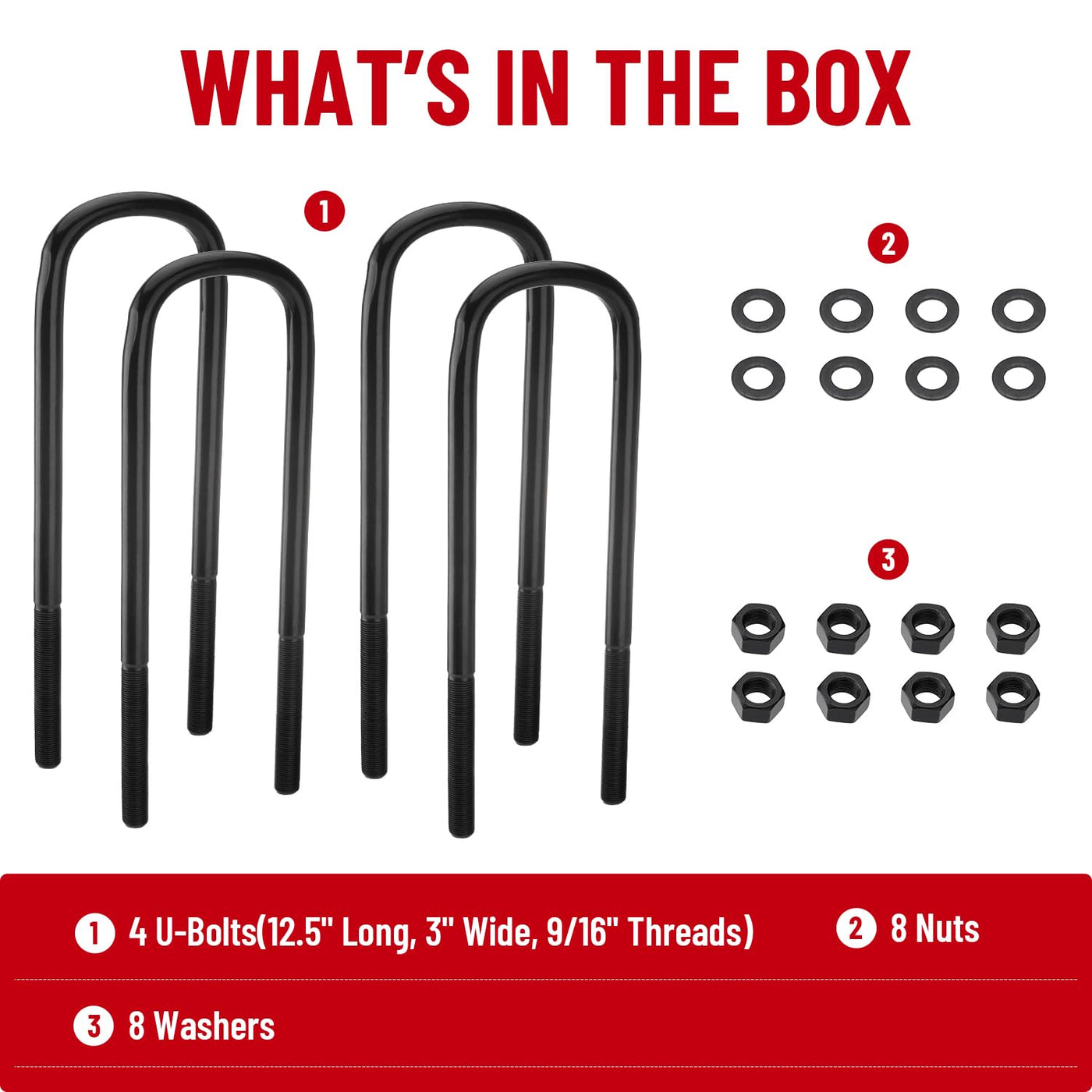 Racewill 4pcs Semi-Round Bend Front U-Bolts Compatible with Ford F250 F350 Super Duty 4WD 1999-2004 12.5 Long x 3 Wide x 9/1
