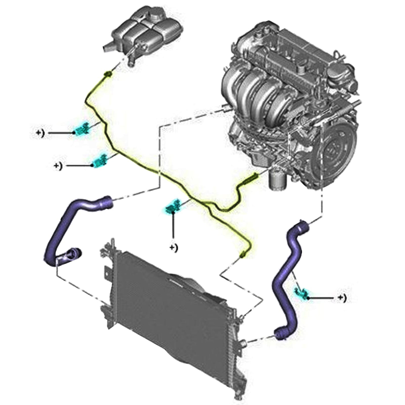 Q: What vehicles are compatible with the Radiator Reservoir Hose?A: The Radiator Reservoir Hose is compatible with the 2012-2018 Ford Focus models equipped with a 2.0L L4 Non-Turbo Engine.