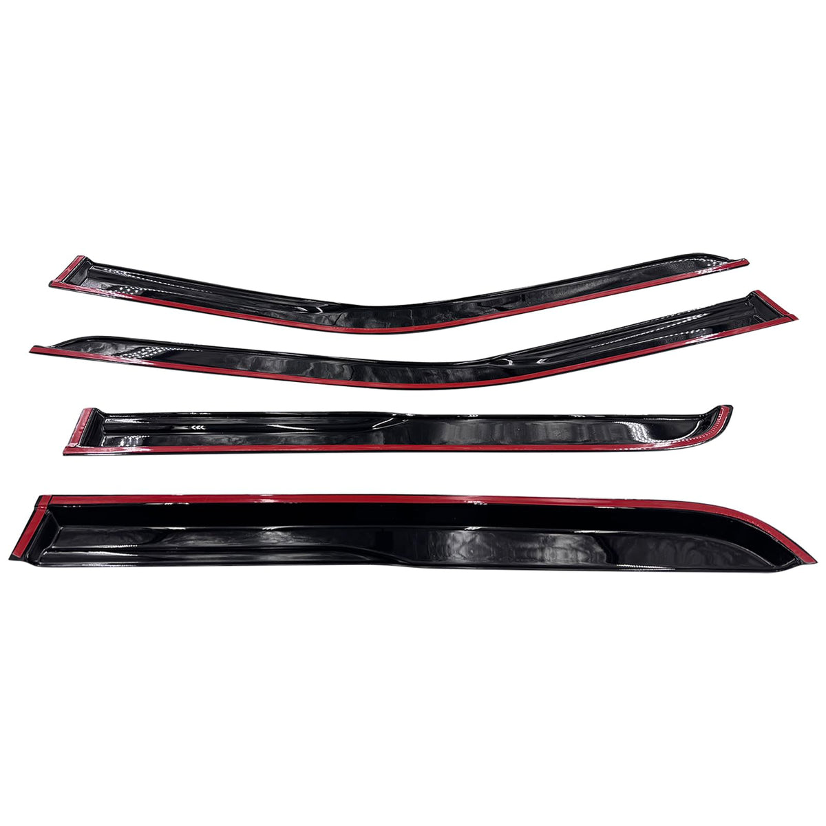 Installation instruction: 1.Lightly wipe the door surface with cloth and cleanser and make sure each installing place get fully cleaned. 2.Peel a slight amount of double sided tape at each end. 3.Put it onto the vehicle, and adjust as needed to find correct position. 4.After the correct position is confirmed, tear the tape from both sides completely and slowly. 5.Press the window visor hard to increase the firmness and finish the installation. 6.Don't wash the car or get it wet within three days after installation. Please don't take the tape off before determine the installation location (upper or lower edge of the window frame).