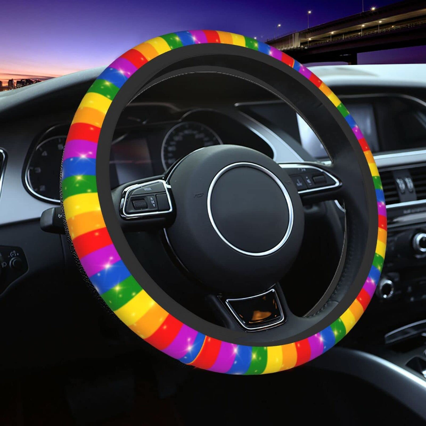 Rainbow Gay Progress Pride Flag Steering Wheel Covers Non Slip Neoprene Steering Wheel Protector Covers Universal 15 Inch For Me
