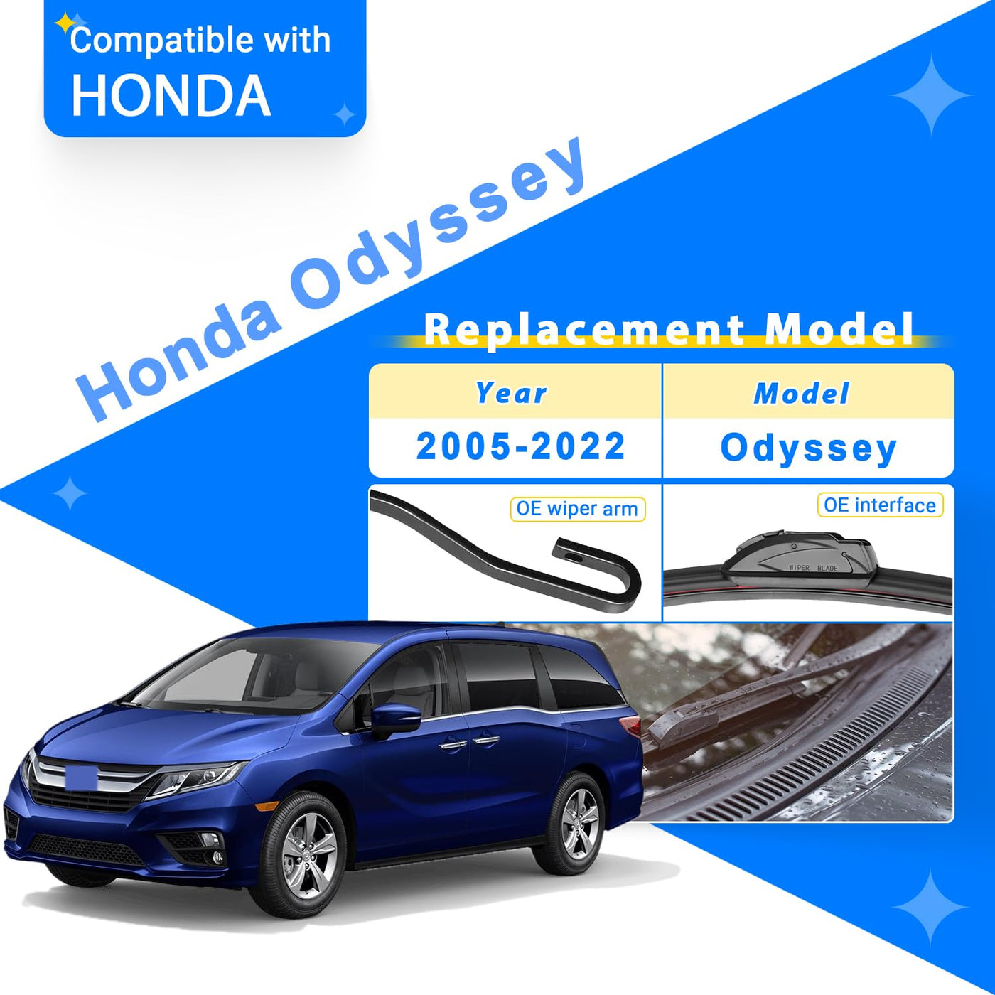 Q: What vehicles are compatible with the RAINTOK Windshield Wiper Blade Set?A: The RAINTOK Windshield Wiper Blade Set is designed specifically for the 2005-2022 Honda Odyssey, ensuring a perfect fit and optimal performance.