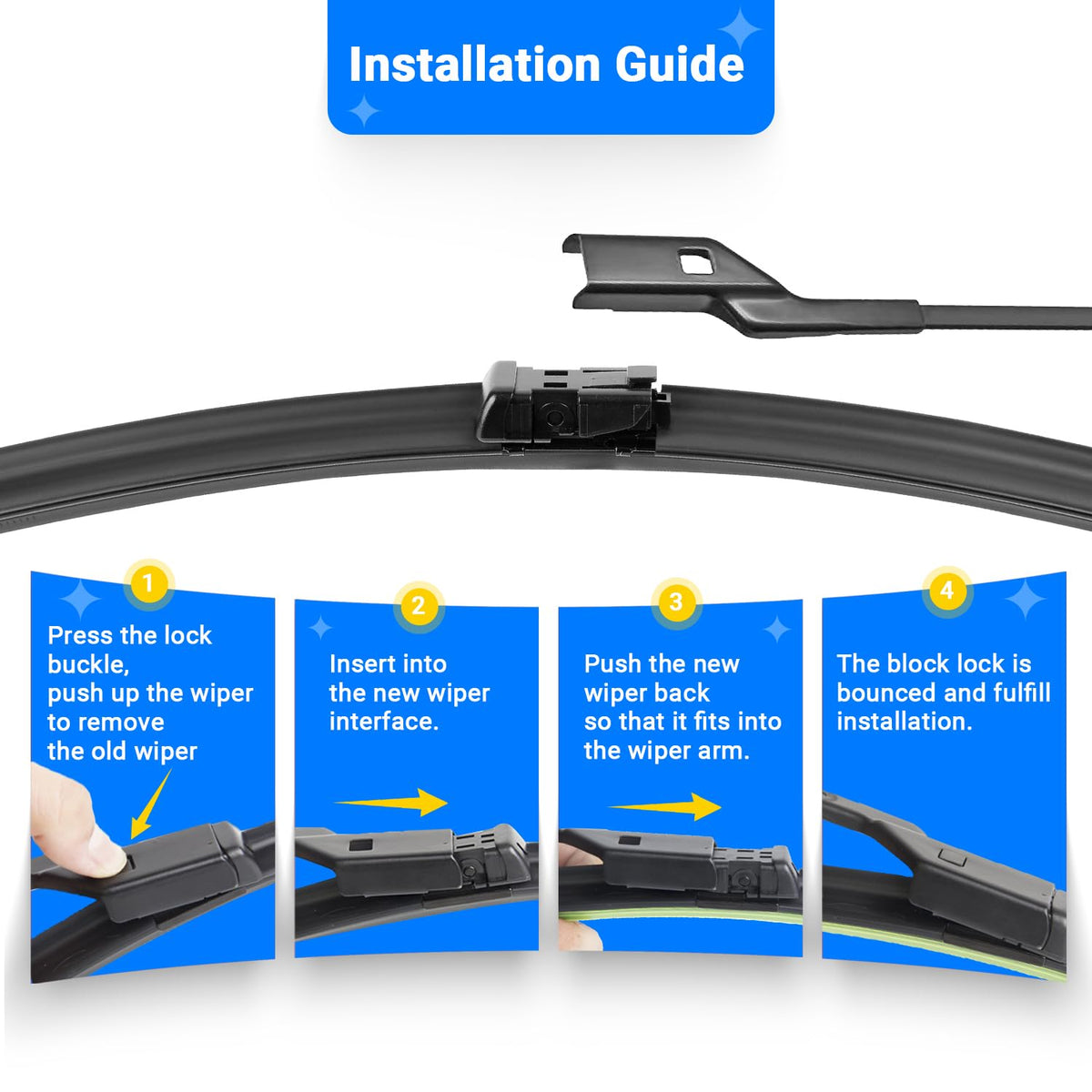 Q: How easy is it to install the RAINTOK wiper blades?A: Installation of the RAINTOK wiper blades is straightforward, thanks to their Exact Fit OE Wiper Interface. The design allows for quick removal and easy cleaning, making it simple for anyone to change the blades.