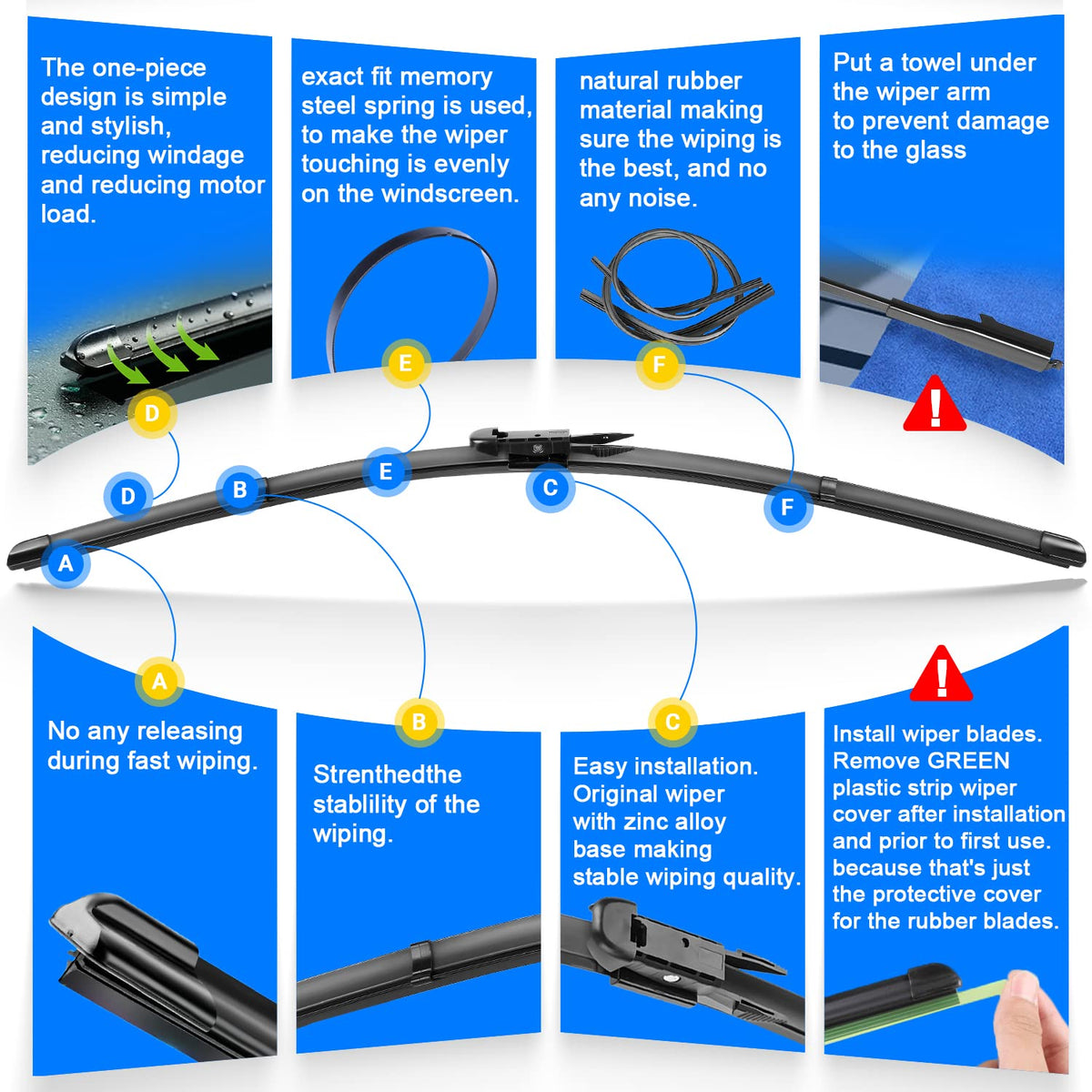 Raintok Windshield Wiper Blades Replacement For Buick Enclave 2012 2013 2014 2015 2016 2017 Original Factory Quality Front Rear