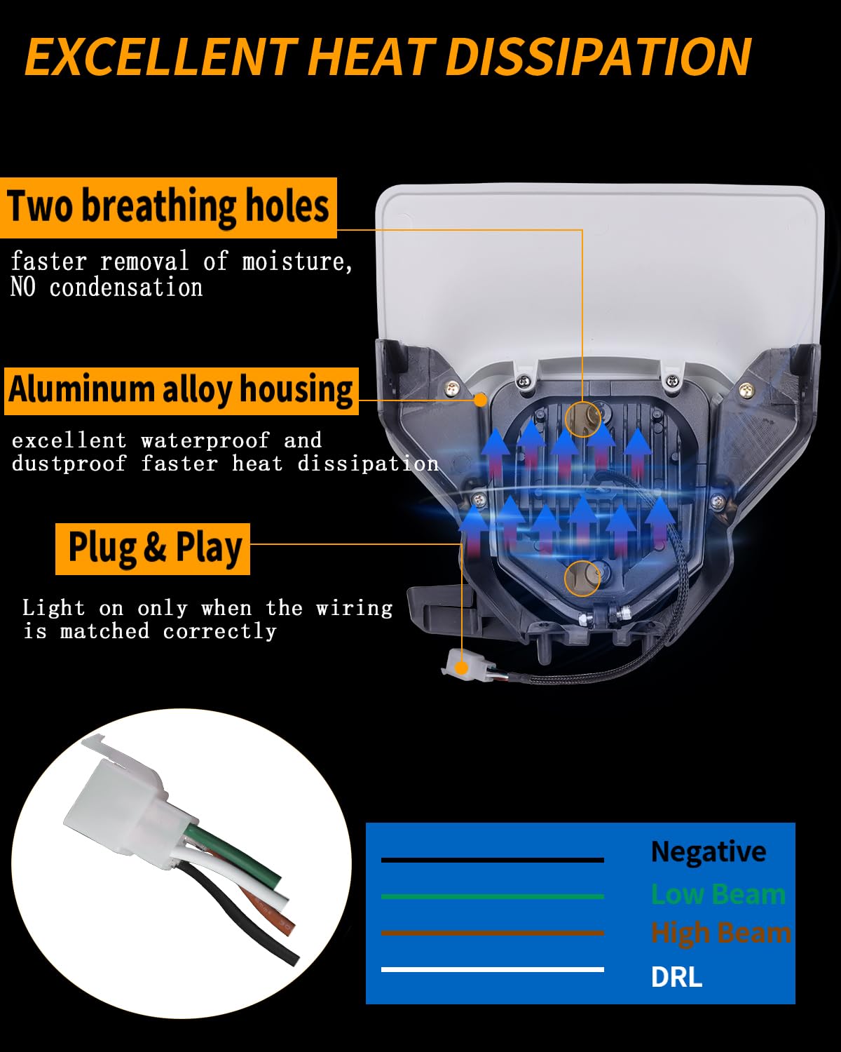 Ramjet4X4 Led Dirt Bike Headlight Motocross Headlamp W/Bezel Fit For 2017-2023 Husqvarna Fe 250 350 450 501 701, Te150 250I 300I