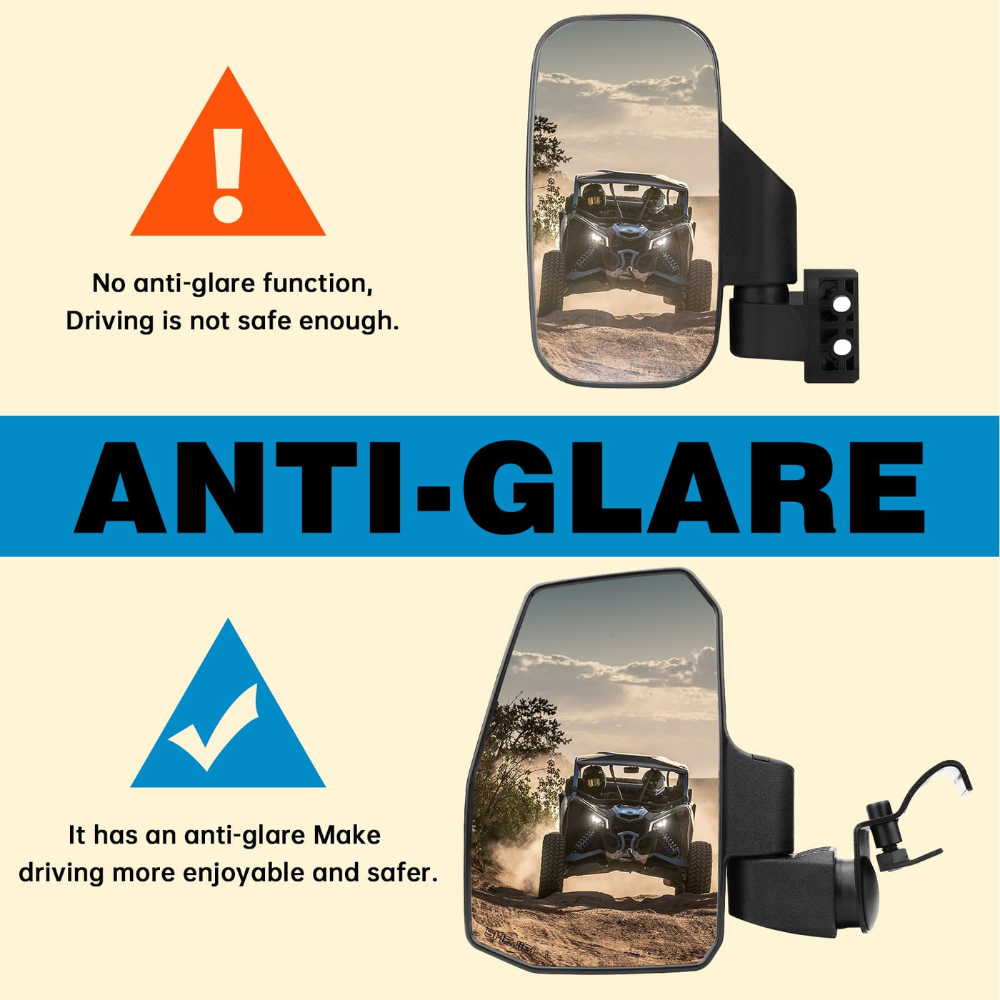 Q: Are these mirrors suitable for UTVs with closed doors or cylindrical anti-roll bars?A: No, these mirrors are not suitable for UTV models with fully closed doors or those that have cylindrical anti-roll bars. Please ensure your UTV meets the compatibility requirements before purchasing.