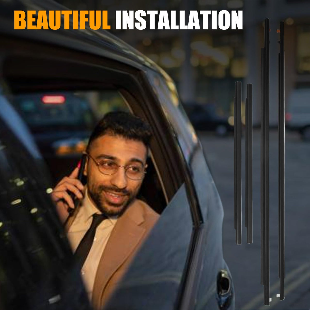 Compatible with: 2007 2008 2009 2010 2011 2012 2013 2014 Toyota FJ Cruiser | Replace Part Number: 68164-35041 68163-35041 68162-35073 68161-35073 | Feature: Made of environmentally friendly materials, strong adhesive at the back, stick firmly, can warp without distortion, stable and durable | Function: The window weatherstrip can effectively solve problems of leaking and shaking of window, and rattle. Strong waterproof, dustproof, and rainproof performance. It can also make your car feel safer, reduce the noise caused by bumps, and make driving more comfortable | Easy to Install: Plug and play design, easy to install, no need to drill or cut, just align the buckle and insert it, sturdy and not easy to fall off
