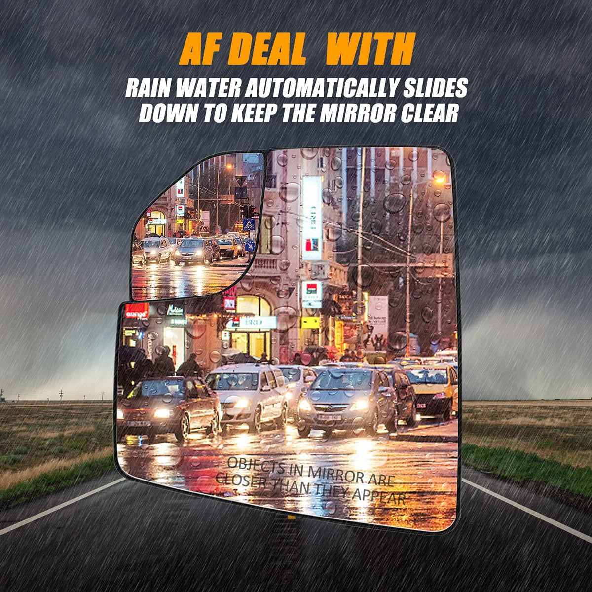 Q: What are the main features of the RANSOTO F150 Mirror Glass?A: This mirror glass features a clean vision design to reduce glare, offers a larger field of view, and has rainwater management that allows water to slide off automatically, keeping the mirror clear for safer driving.
