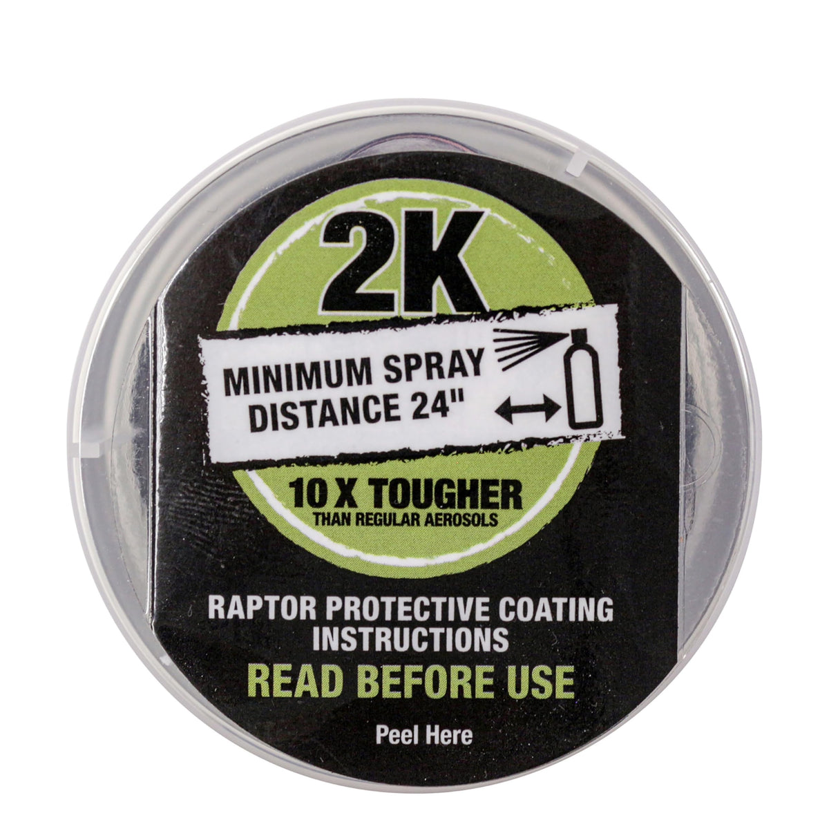 Q: What is the size of the RAPTOR Bedliner Aerosol can?A: The RAPTOR 2K Bedliner Aerosol comes in a 400ml can, which is perfect for both small applications and larger projects.