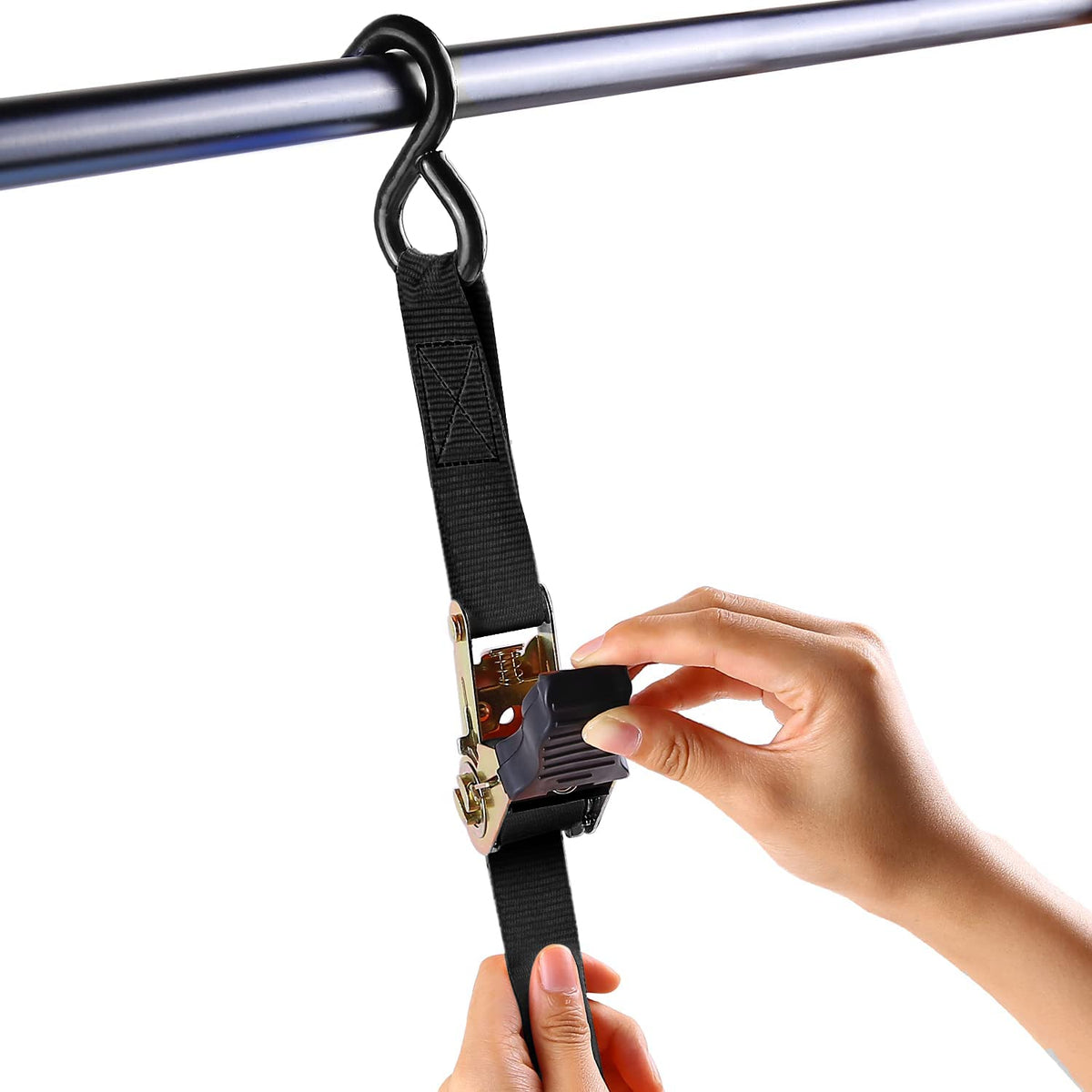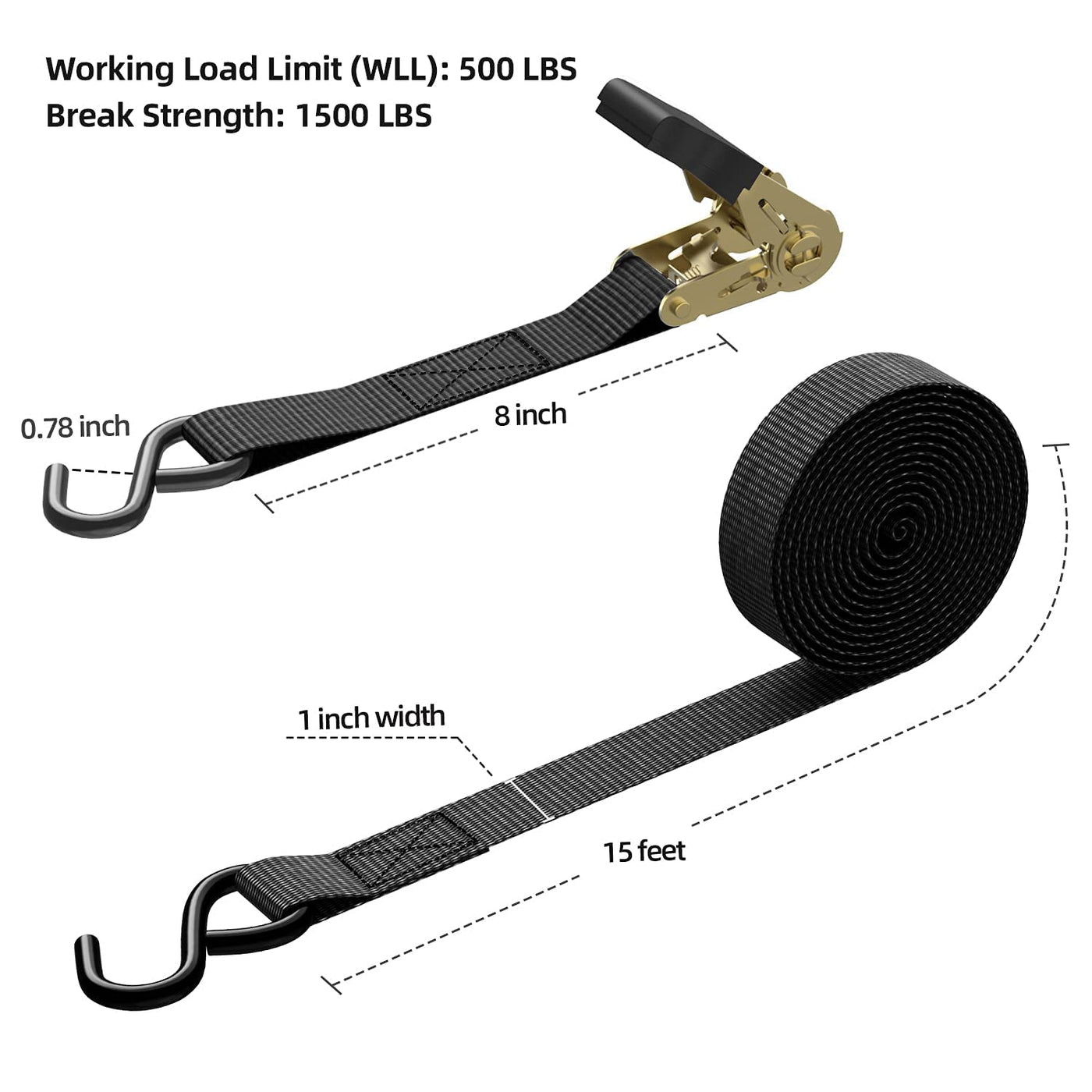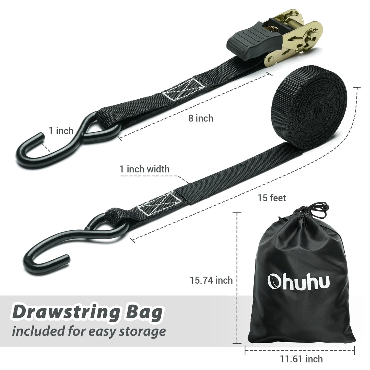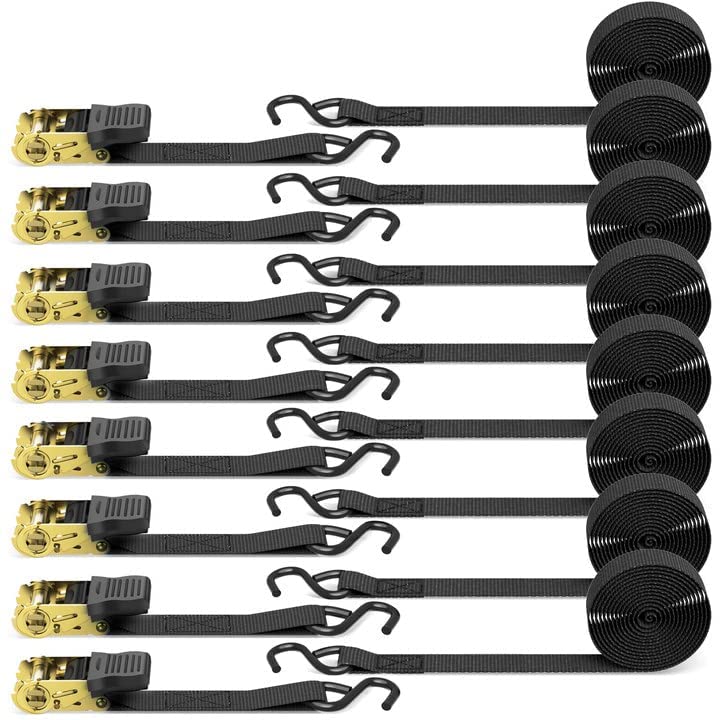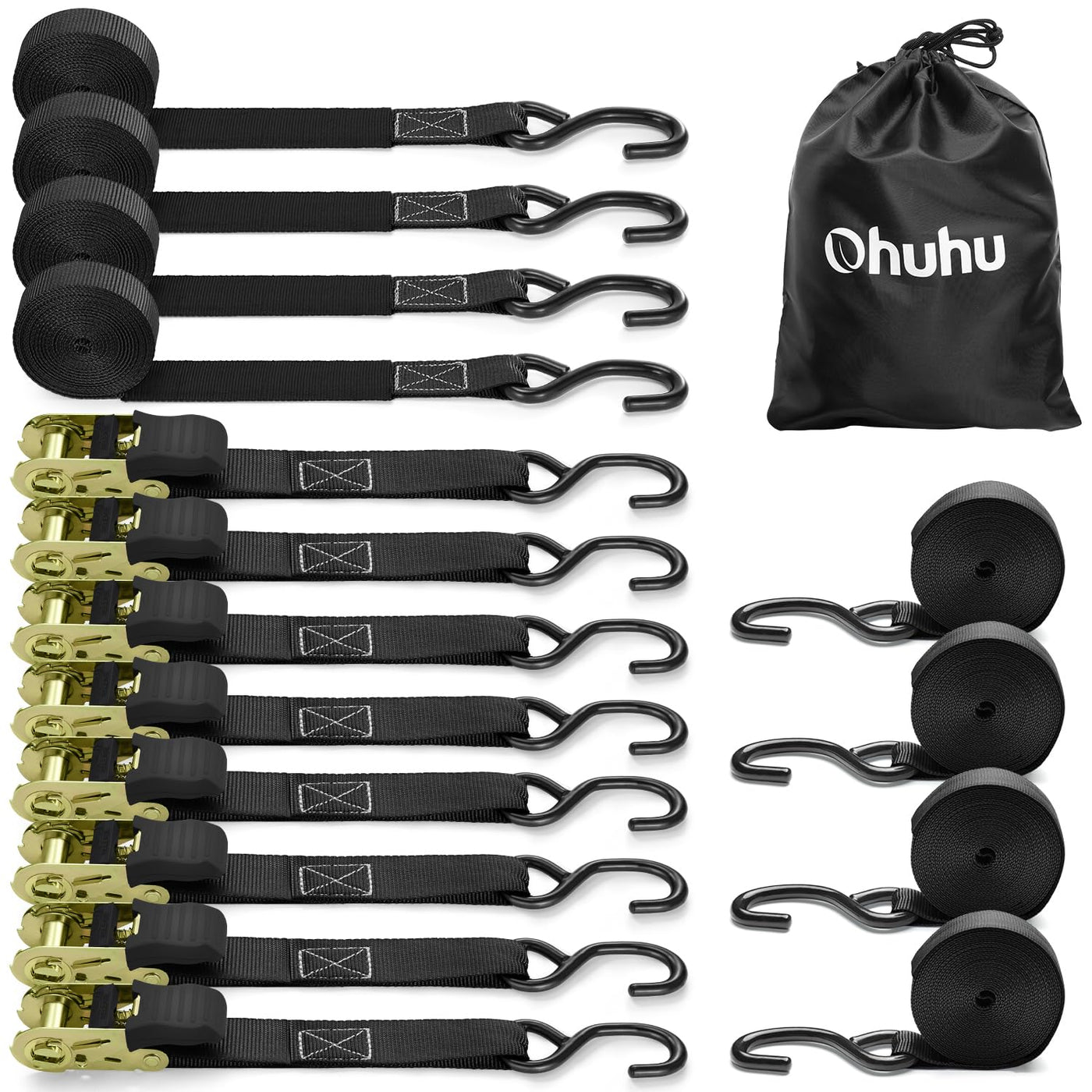 Ratchet Tie Down Strap 8-Pack 15 Ft - 500 lbs Load Cap with 1500 lbs Breaking Limit, Ohuhu Ratchet Tie Downs Logistic Cargo Straps for Moving Appliances, Motorcycle (Black)